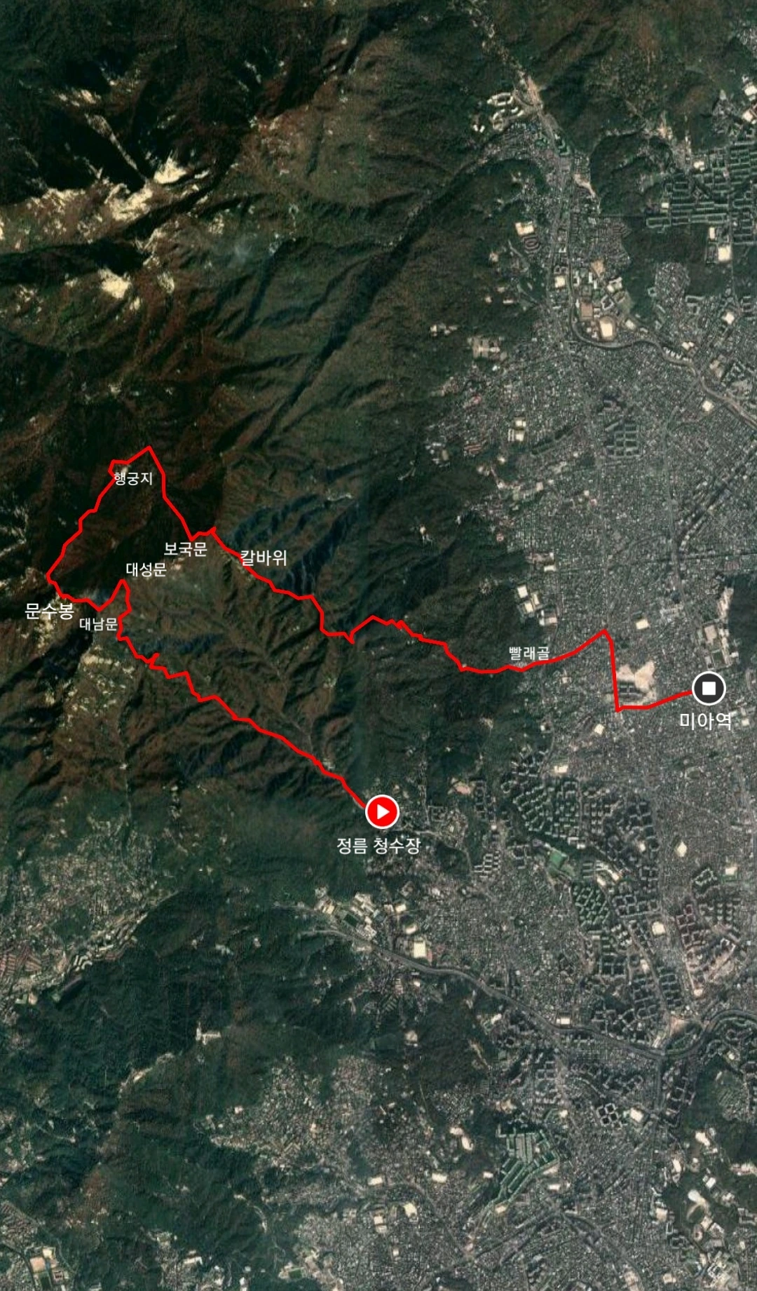 북한산 정릉탐방지원센터에서 북한산 주능선에 오르는 길은 두 갈래다. 정릉계곡을 지나 보국문에 이르는 길과 청수천을 지나 대성문에 이르는 길이 그것이다. 청수천을 따라 대성문에 이른 뒤 대남문, 문수봉을 지나고 청수동암문에서 의상봉능선으로 접어들어 얼마 가지 않아 행궁지 방향으로 가는 능선길이 나온다. 행궁지를 지나면 북한천 계곡이 나오고 다시 보국문으로 올라와 칼바위능선을 따라 빨래골로 내려오면 마치 U자를 뒤집어 놓은 모습의 탐방로를 이룬다. 반대 방향으로 빨래골에서 시작해 정릉으로 내려와도 마찬가지다.