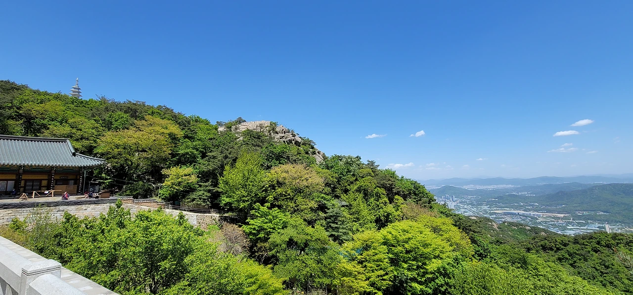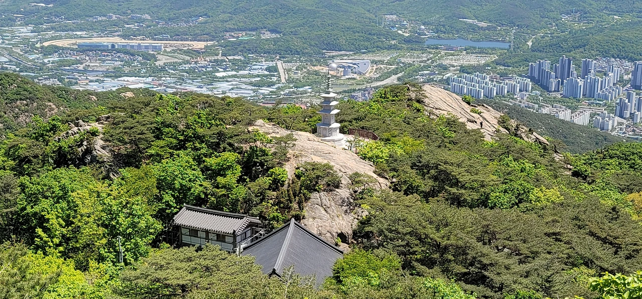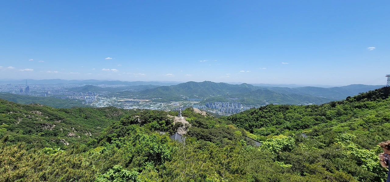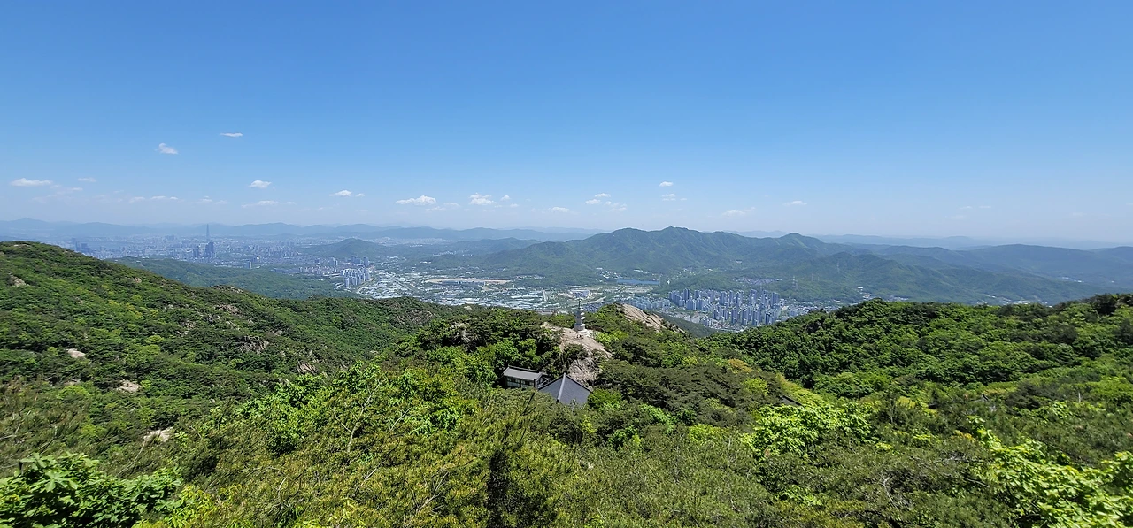 기상레이더관측소 방향 능선길에 오르면 전망이 훌륭하다. 청계산이 우뚝 서 있고 구룡산과 대모산은 아주 자그만 산처럼 보인다. 과천 경마장이 보이는가 하면 과천 시내 아파트 단지가 녹지 사이에 자리하고 있다. 연주암은 제3깔딱고개 조금 아래에 위치한다. 세종대왕의 형인 효령대군을 기리는 효령각이 연주암 부근에 있다. 연주암은 꽤 큰 사찰로 많은 등산객들이 이곳에서 쉬어간다.