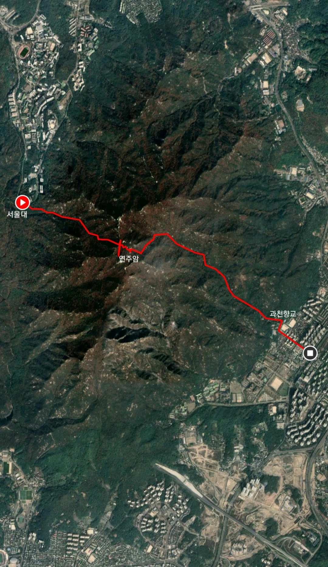 관악산을 오르는 최단 코스 중 하나가 서울대 관악캠퍼스 남쪽 끝에서 계곡을 따라 제3깔딱고개에 오르는 길이다. 제3깔딱고개에서 관악산 정상인 연주대까지는 그리 멀지 않다. 서울대에서 계곡길을 올라 고개를 넘으면 바로 하산길로서 계곡을 따라 끝까지 내려가면 과천향교에 이른다. 서울대에서 제3깔딱고개까지는 보통 1시간 정도 걸린다. 과천향교에서 출발하여 서울대로 하산할 수도 있다.
