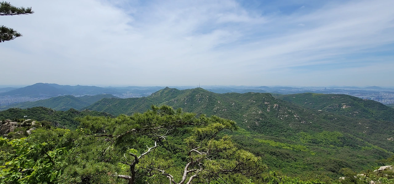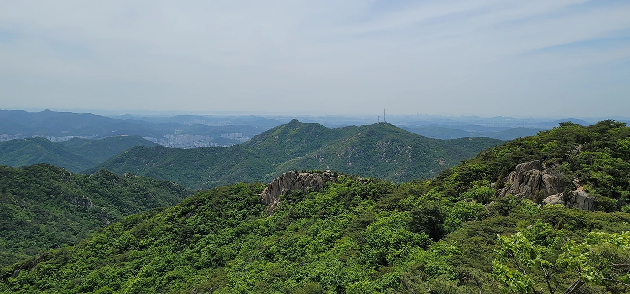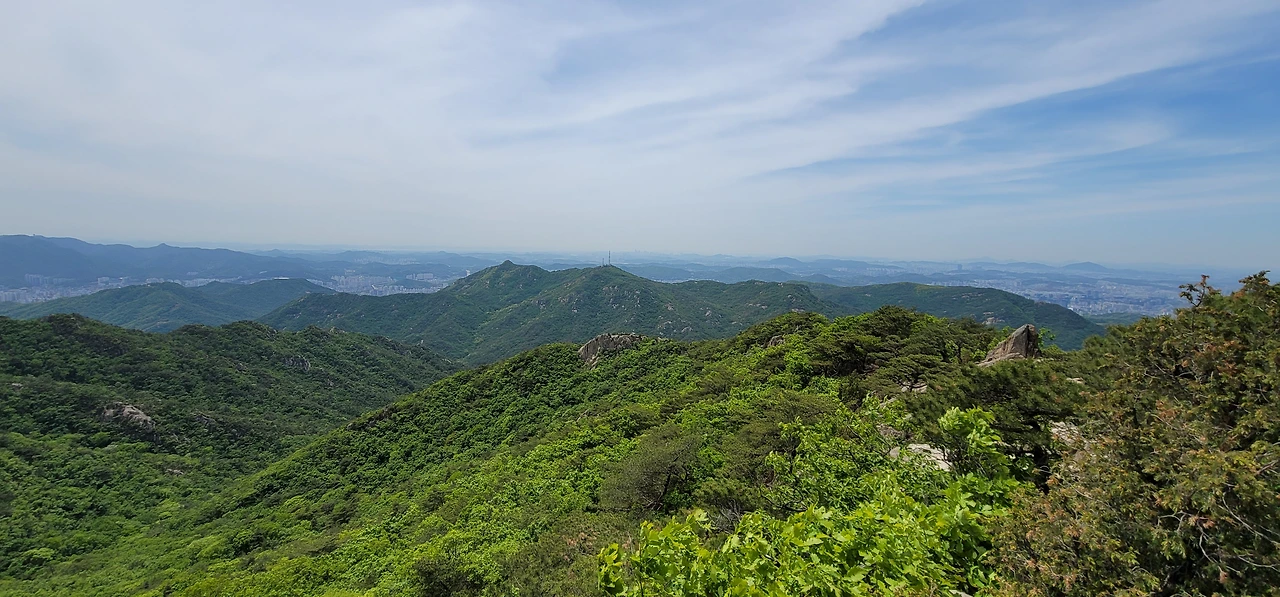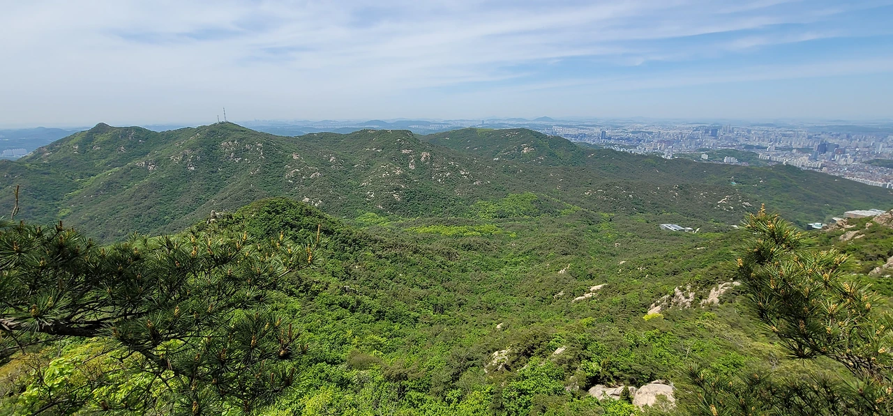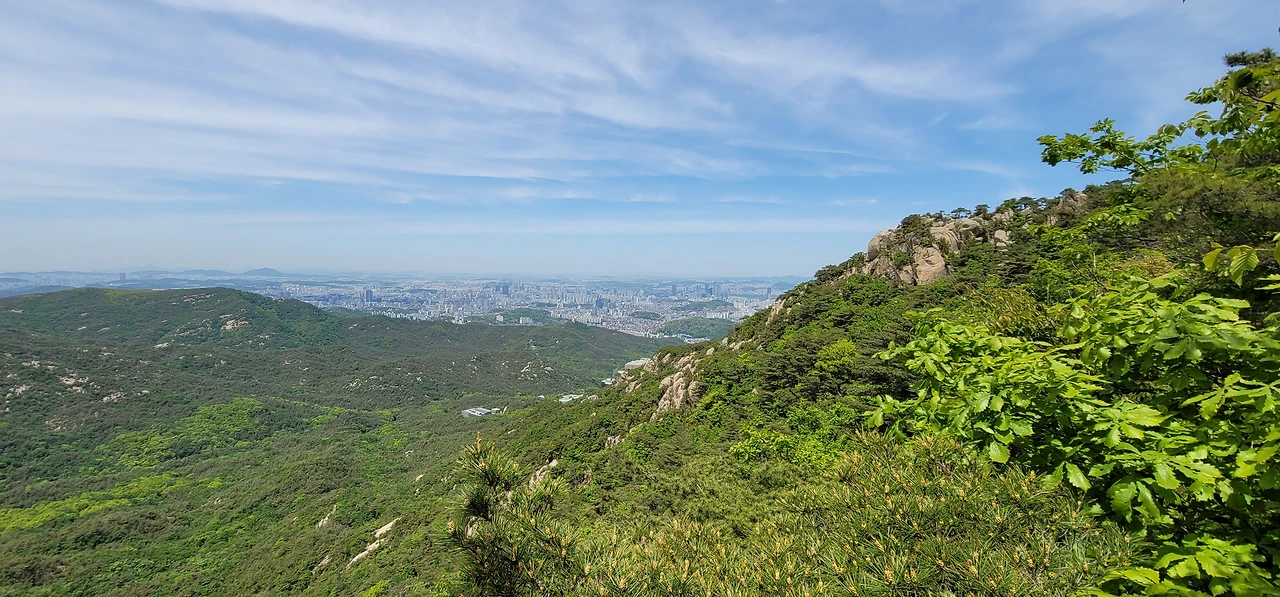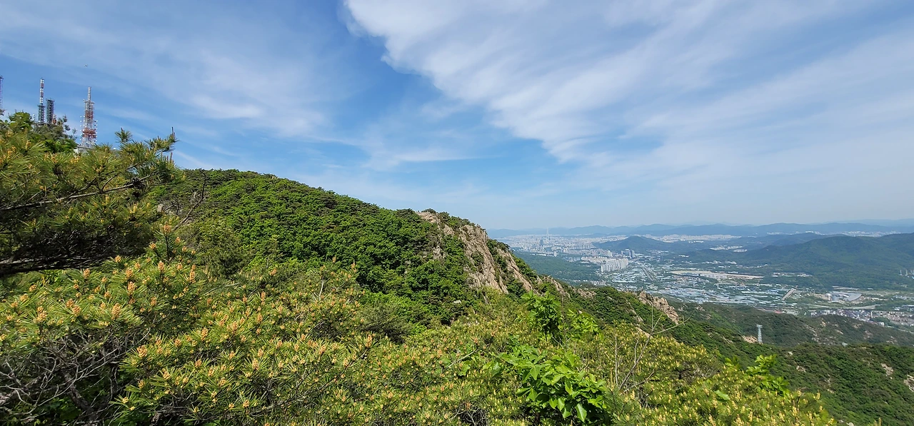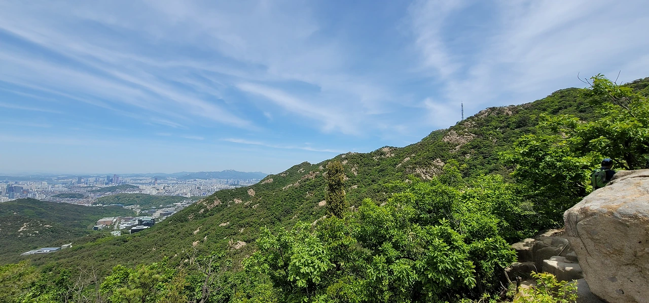 처음에는 수풀 속을 계속 걷지만 갑자기 시야가 탁 트인 곳이 나타나고 건너편에 삼성산이 우뚝 서 있음을 보게 된다. 그 뒤로 차차 고도가 높아지면서 학바위에 이르게 되는데 그 부근에서의 전망은 실로 대단하다. 저 멀리 인천의 계양산이 보이는가 하면 북쪽으로는 북한산과 도봉산, 수락산이 보인다. 남산은 매우 야트막하게 자리잡고 있다. 서울의 남서쪽인 금천구, 구로구, 양천구, 강서구, 영등포구, 관악구가 이곳만큼 일목요연하게 보이는 곳을 찾기는 어려울 것이다.