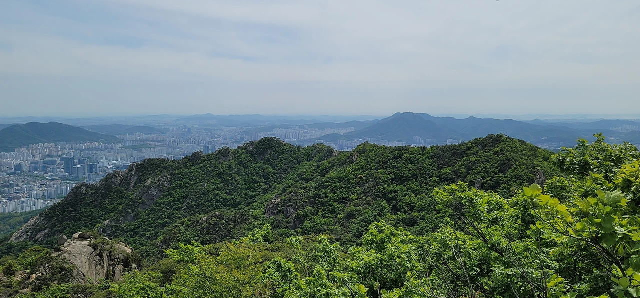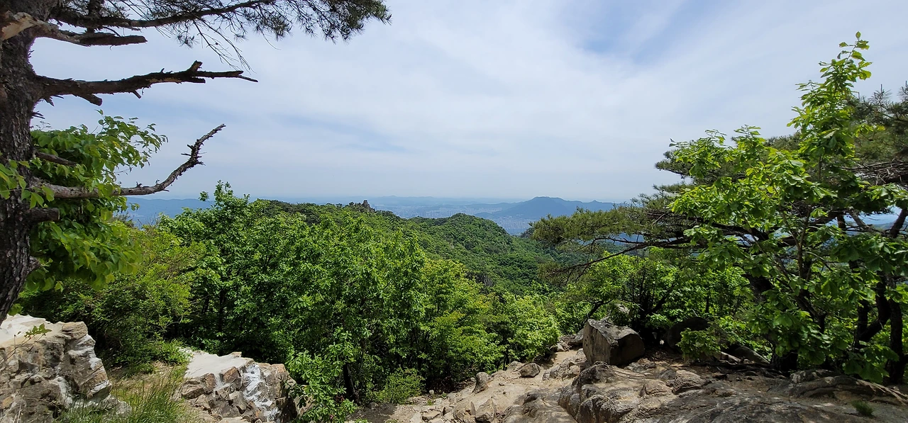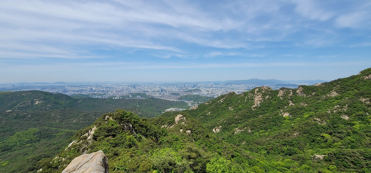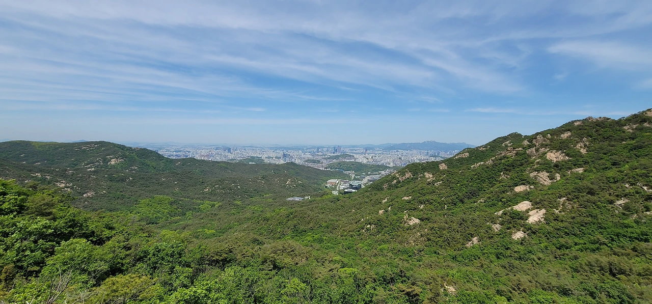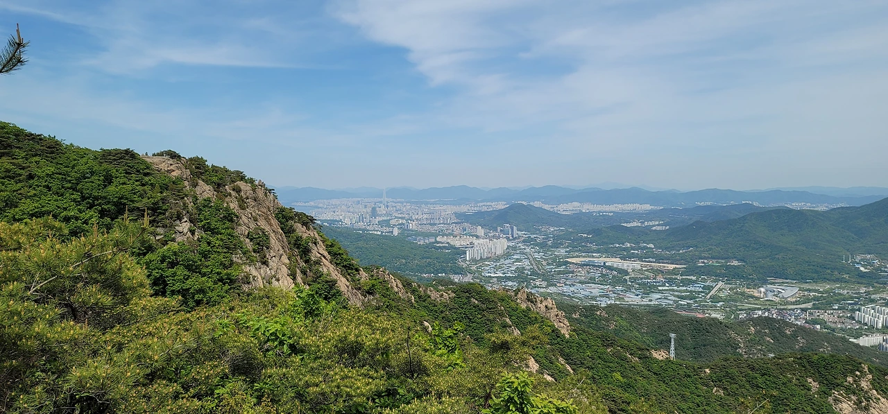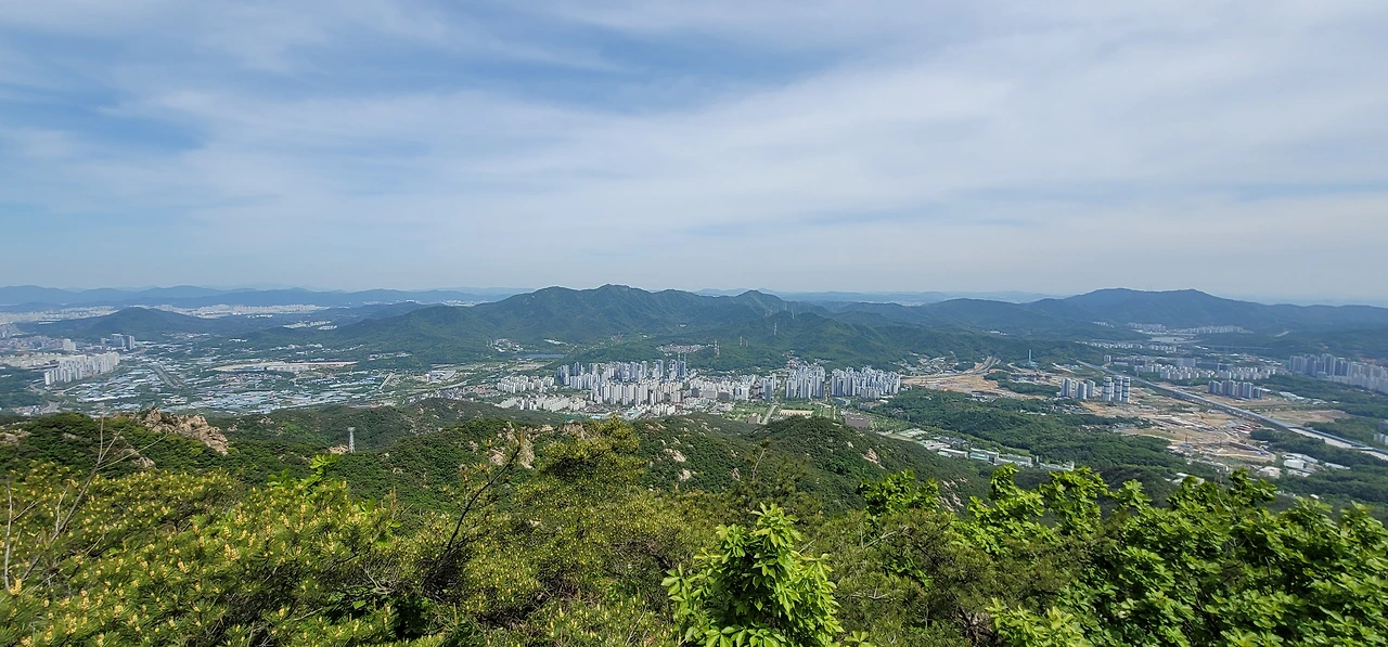 처음에는 수풀 속을 계속 걷지만 갑자기 시야가 탁 트인 곳이 나타나고 건너편에 삼성산이 우뚝 서 있음을 보게 된다. 그 뒤로 차차 고도가 높아지면서 학바위에 이르게 되는데 그 부근에서의 전망은 실로 대단하다. 저 멀리 인천의 계양산이 보이는가 하면 북쪽으로는 북한산과 도봉산, 수락산이 보인다. 남산은 매우 야트막하게 자리잡고 있다. 서울의 남서쪽인 금천구, 구로구, 양천구, 강서구, 영등포구, 관악구가 이곳만큼 일목요연하게 보이는 곳을 찾기는 어려울 것이다.