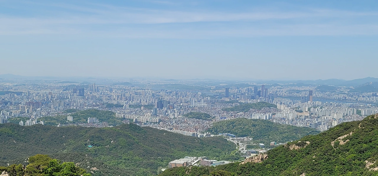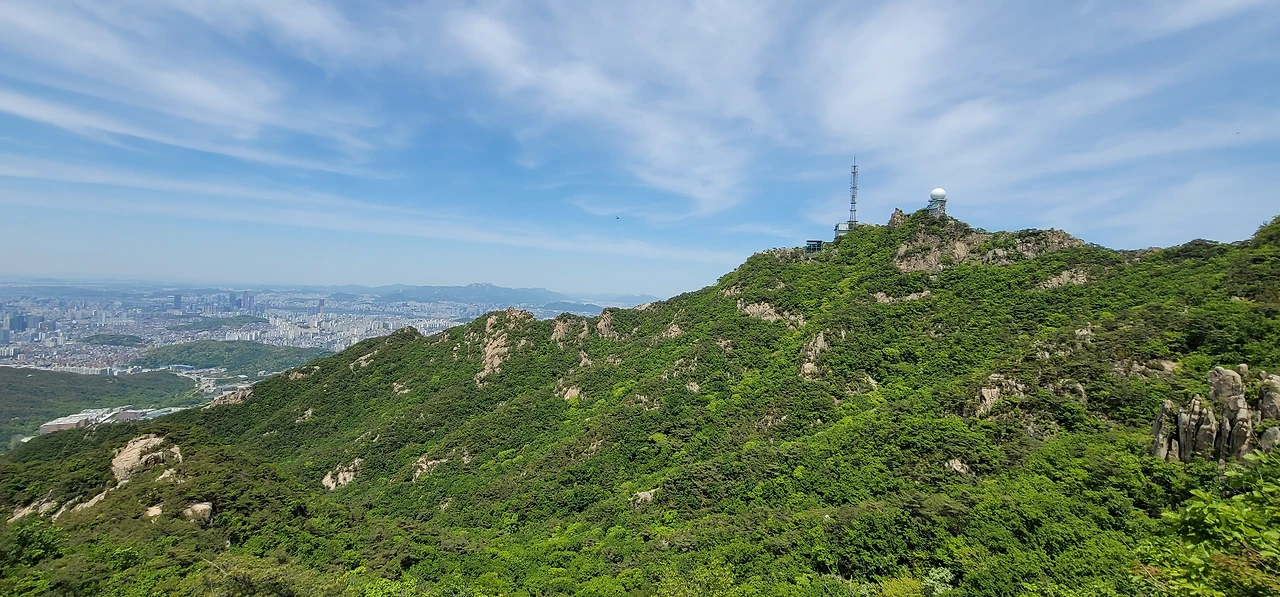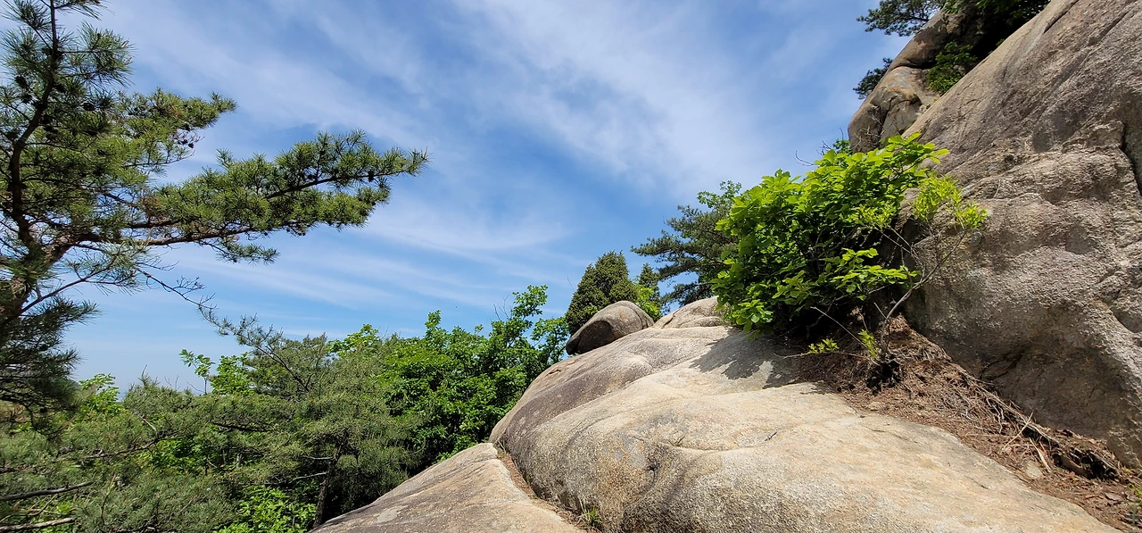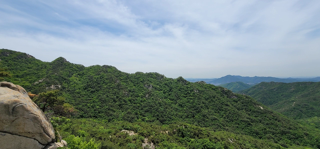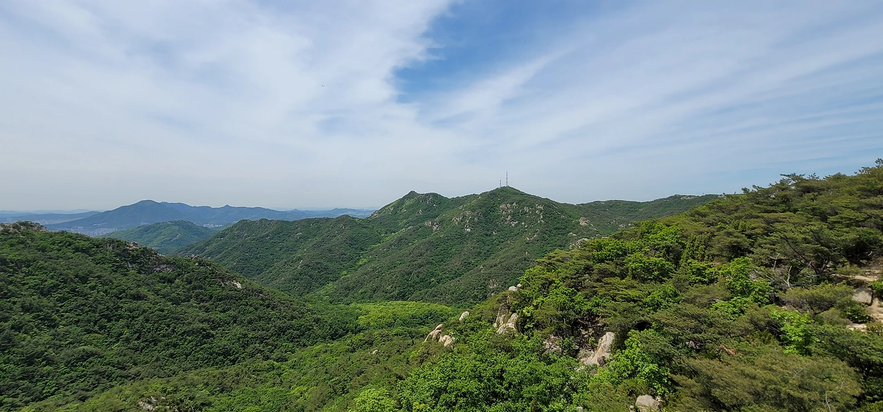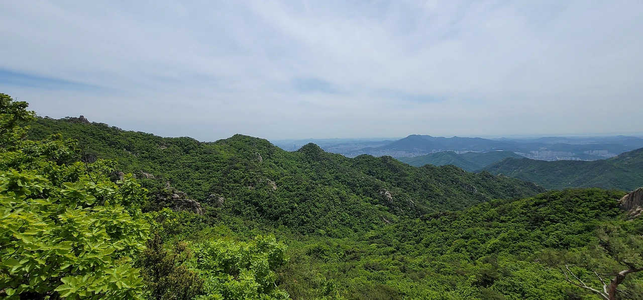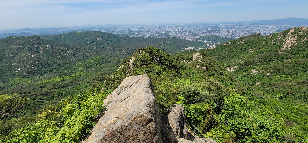 처음에는 수풀 속을 계속 걷지만 갑자기 시야가 탁 트인 곳이 나타나고 건너편에 삼성산이 우뚝 서 있음을 보게 된다. 그 뒤로 차차 고도가 높아지면서 학바위에 이르게 되는데 그 부근에서의 전망은 실로 대단하다. 저 멀리 인천의 계양산이 보이는가 하면 북쪽으로는 북한산과 도봉산, 수락산이 보인다. 남산은 매우 야트막하게 자리잡고 있다. 서울의 남서쪽인 금천구, 구로구, 양천구, 강서구, 영등포구, 관악구가 이곳만큼 일목요연하게 보이는 곳을 찾기는 어려울 것이다.