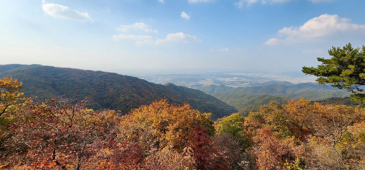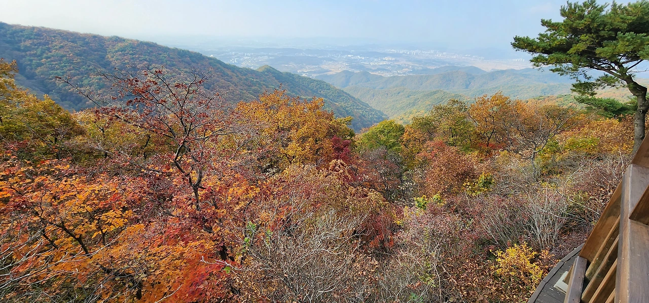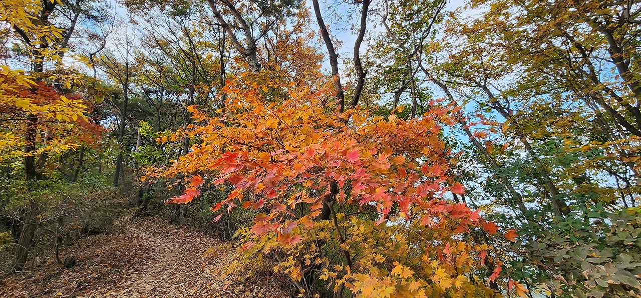 단풍이 절정이라는데 집에 가만 있을 수 없었다. 전철을 타고 성환에서 내린 뒤 버스를 타고 입장으로 갔다. 다시 버스를 갈아타고 청룡에 이르렀다. 서운산 정상을 향해 터벅터벅 걸었다. 산이 울긋불긋했다. 만산홍엽이라더니...