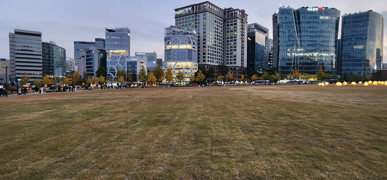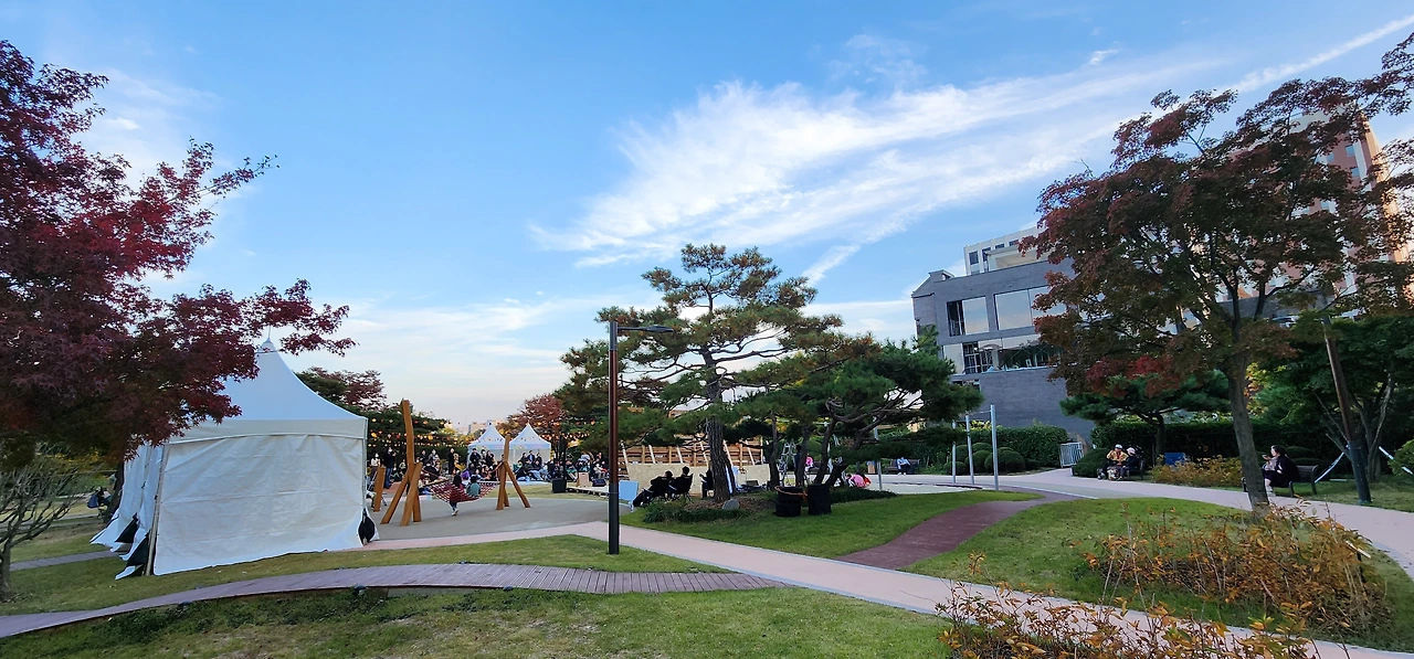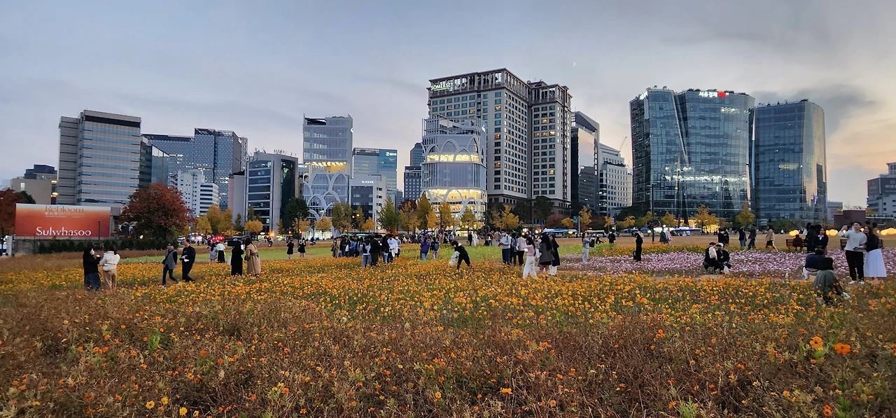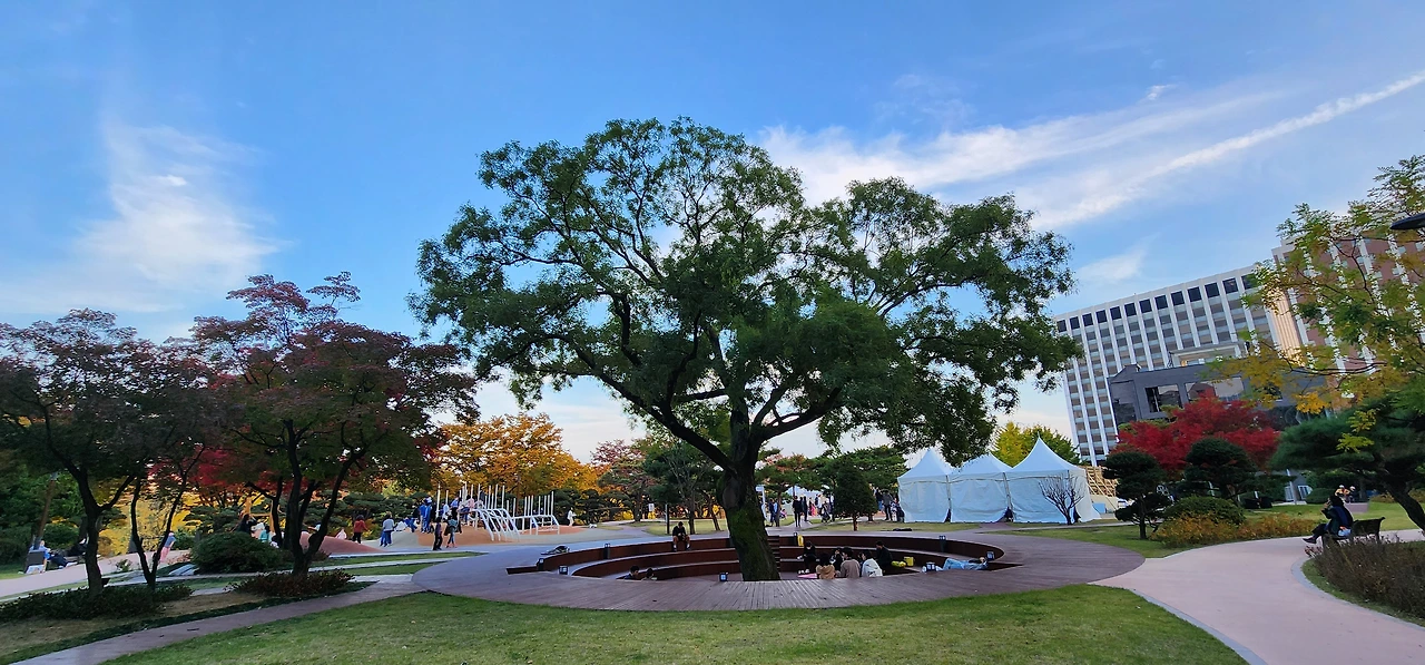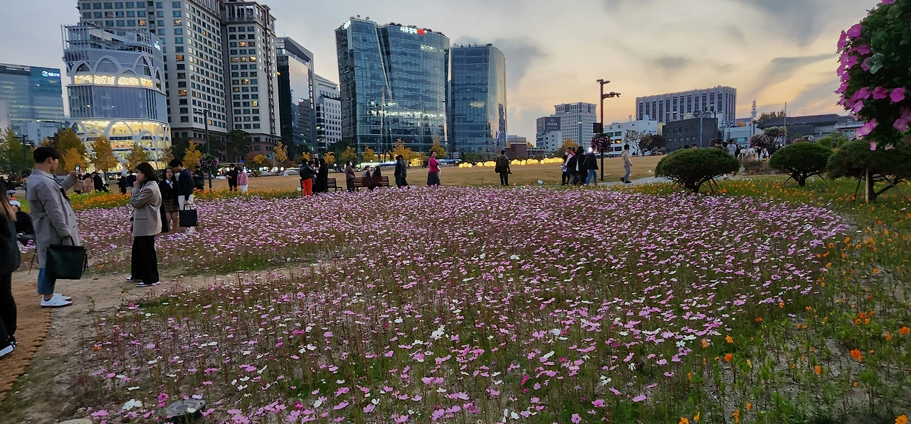 가회동 북촌한옥마을엔 여간 사람들이 많지 않았다. 내국인, 외국인이 뒤섞여 있었다. 정독도서관 정문에서 덕성여고를 지나 안국동사거리로 이르는 길은 가히 인산인해였다. 그 길 끝 무렵에 이르러 놀라운 장면을 보았다. 오래도록 우뚝 서 있었던 육중한 담은 자취도 없이 사라지고 드넓은 벌판이 도심에 펼쳐져 있었다. 송현동 대한항공 부지가 거대한 꽃밭, 잔디밭으로 변해 있었다. 예전에 그곳은 미국 대사관 직원 숙소여서 전혀 내부를 알 수 없었는데... 앞으로 이곳은 어떻게 변할까.