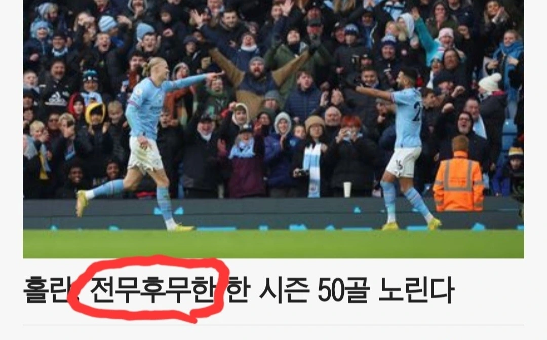 천재 축구선수의 출현에 탄성을 지르는 건 좋으나 '전무후무한 한 시즌 50골 노린다'는 제목에는 도무지 공감할 수 없다. 전무후무하다니! '전무'는 확인이 가능하지만 '후무'는 어떻게 안단 말인가. 미래에 어떤 빼어난 선수가 나타나 기록을 깰지 어떻게 아나.