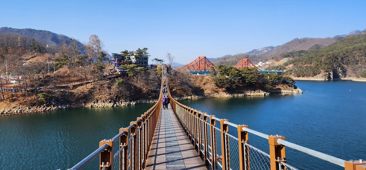 옥순봉, 구담봉을 보고 나니 다음에는 좀 더 높이 제비봉, 가은산도 올라봐야겠단 생각이 든다. 내처 금수산에도 도전해보고 싶고... 구담봉 주차장에서 구담봉에 올랐다가 옥순봉 거쳐서 하산하는 데 3시간 정도 걸린다. 그리 긴 코스가 아니다. 옥순봉출렁다리는 진정한 출렁다리다. 출렁출렁~~~