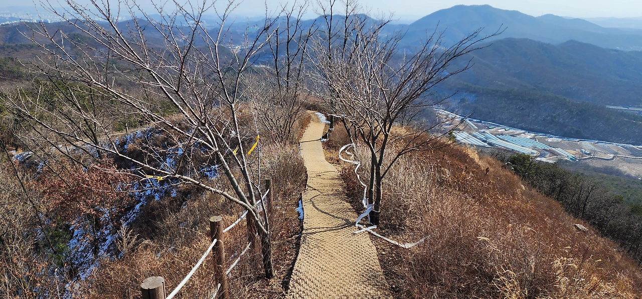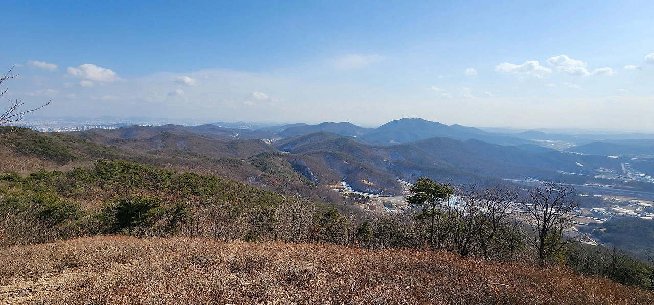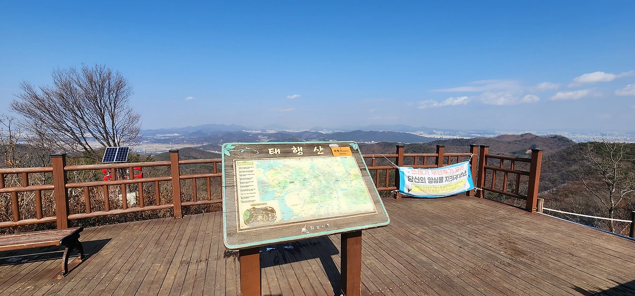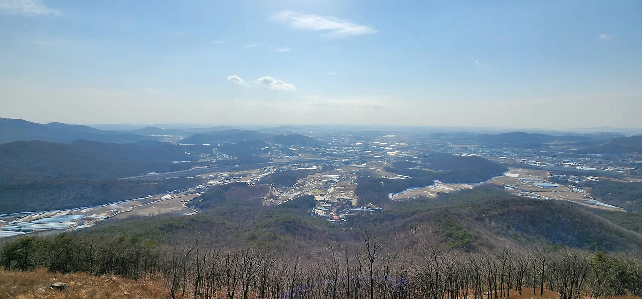 태행산 정상까지 두 군데 가파른 계단이 있다. 특히 두 번째 정상 부근의 계단은 가도 가도 끝이 없는 것 같은 느낌이다. 거친 숨을 몰아쉬고 드디어 정상에 올라서면 탁 트인 전망이 여간 시원스럽지 않다. 사방 어느 곳도 막힌 데 없어 고생한 보람을 톡톡히 찾는다. 서쪽으로는 저 멀리 서해바다가 보이는 듯하다. 동쪽으로는 수원시가 아득히 보이고...