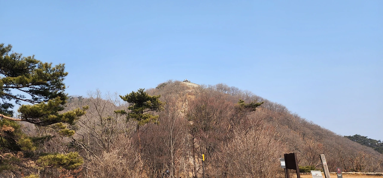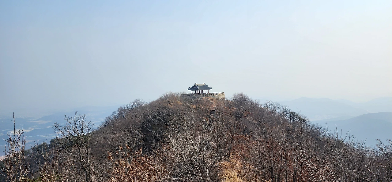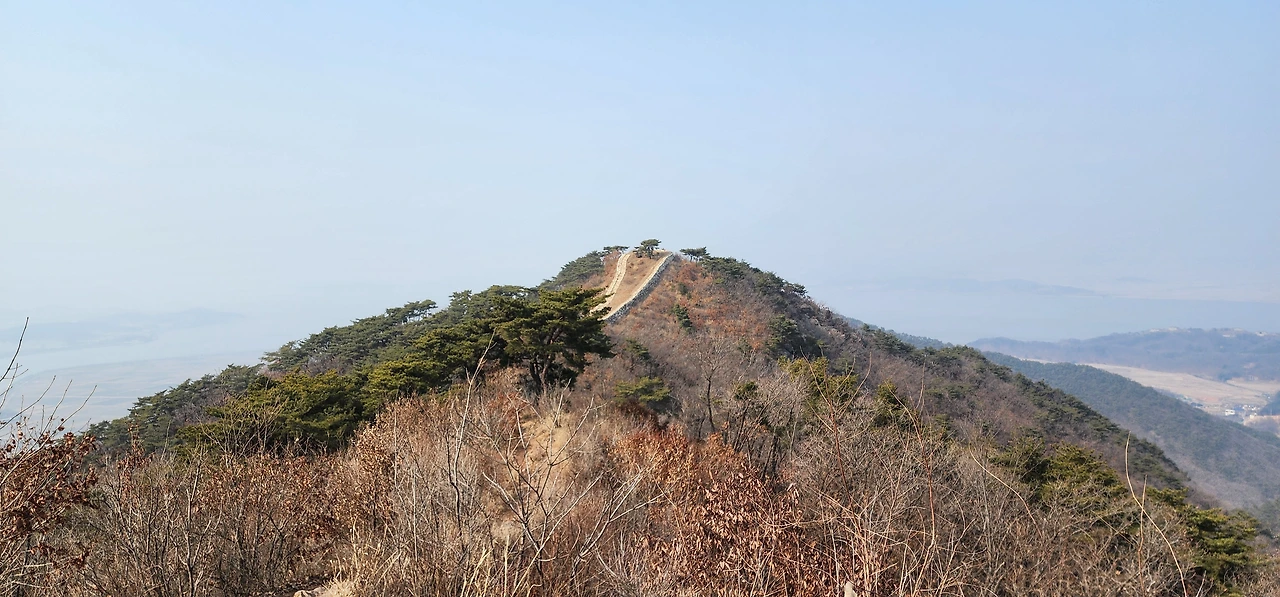 이윽고 구름다리가 나타났는데 김포대학교 부근이다. 도로 위로 난 구름다리를 건너면서 본격적인 등산이 시작됐다. 차츰 가팔라지기 시작했다. 오르막 경사가 제법 심해 숨을 할딱이며 차근차근 올랐다. 네거리에서 잠시 쉰 다음 좀 더 위 팔각정에 이르르니 제법 조망이 탁 트였다. 그곳을 지나면서부터는 본격적인 오르막이었다. 그리고 드디어 능선에 이르렀다. 산성 한 지점에 남아문이 서 있었다. 이제 정상이 그리 멀지 않았다. 헬기장을 지나니 얼마 가지 않아 문수산 정상이 나타났다. 해발 376m다.