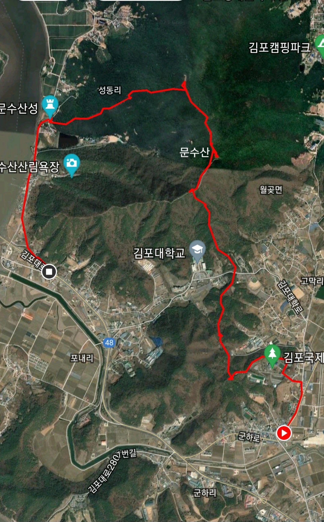 9.6km를 4시간 25분 동안 걸었다. 걸음 수는 18,000보였다. 날씨는 따뜻했으나 하늘은 뿌옜다. 사진이 선명하게 나오지 않아 아쉬웠다. 그러나 강화도를 내려다볼 수 있었고 강화도와 육지 사이의 강인 염하도 사진에 담았다. 문수산은 강화도 바로 건너편 산이다. 한강을 사이에 두고 북한과 마주하고 있기도 하다. 가봐야지 하면서도 못 갔던 문수산엘 드디어 올랐다. 원을 풀었다. 산자락에 조각공원이 있고 걷기 좋은 군하숲길이 있다.