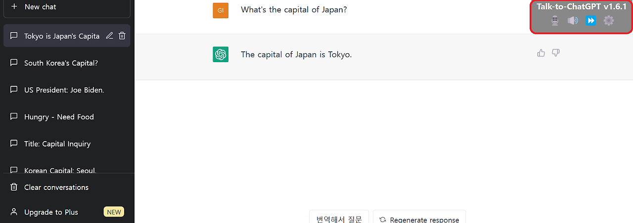 그럴 줄 알았다. 챗GPT가 키보드로 글자를 쳐넣어서 명령을 해야만 답을 내놓으니 여간 불편하지 않은데 소리를 알아들으면 얼마나 좋을까 생각했는데 그걸 가능하게 해주는 확장 프로그램이 있었다. Talk-to-ChatGPT라는 프로그램이었다. 당장 깔았다. 그리고 써 보았다.
