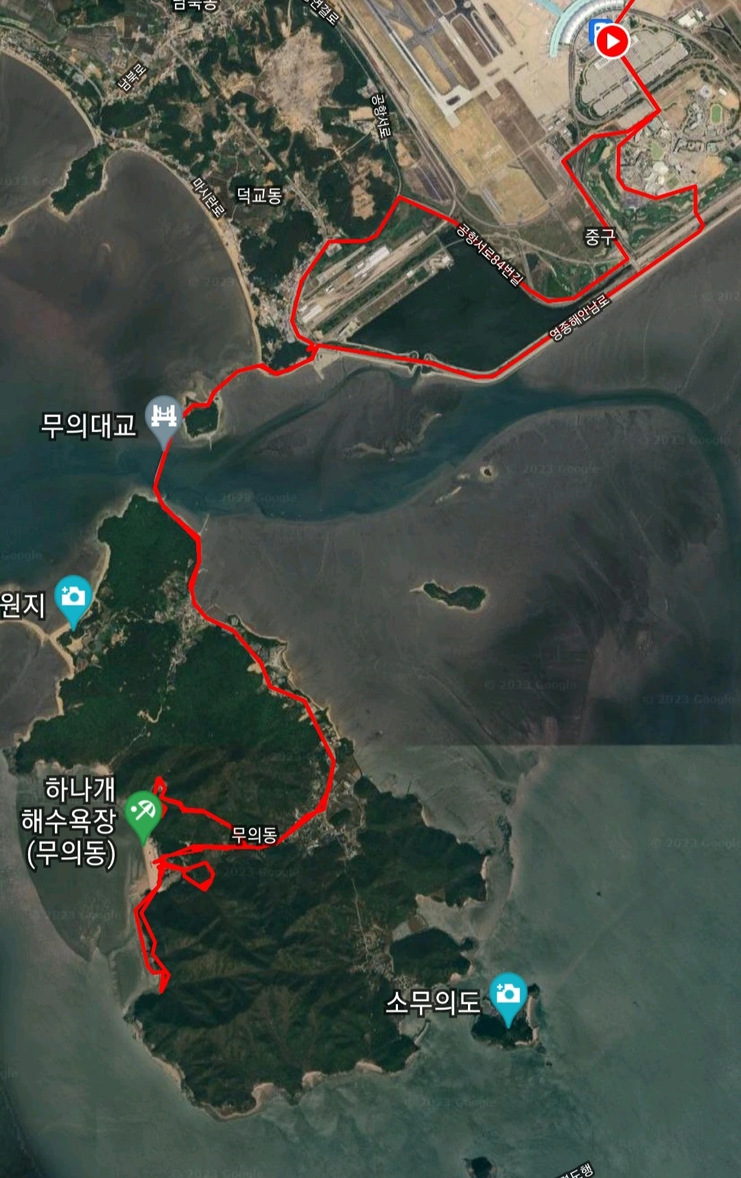 오랜만에 자전거를 타고 무의도에 갔다. 자전거로는 적어도 3년 이상 된 것 같고 차 타고 간 건 1년쯤 지난 것 같다. 토요일 낮 공항철도를 타고 인천공항1터미널역에서 내렸다. 인천공항은 코로나가 해제되어 여행객들로 여간 북적이지 않았다. 바로 터미널을 빠져 나와 자전거를 갖고 육상으로 올라왔다. 바람이 제법 세찼다. 옷을 얇게 입고 온 걸 후회했다. 어쩔 수 없었다.