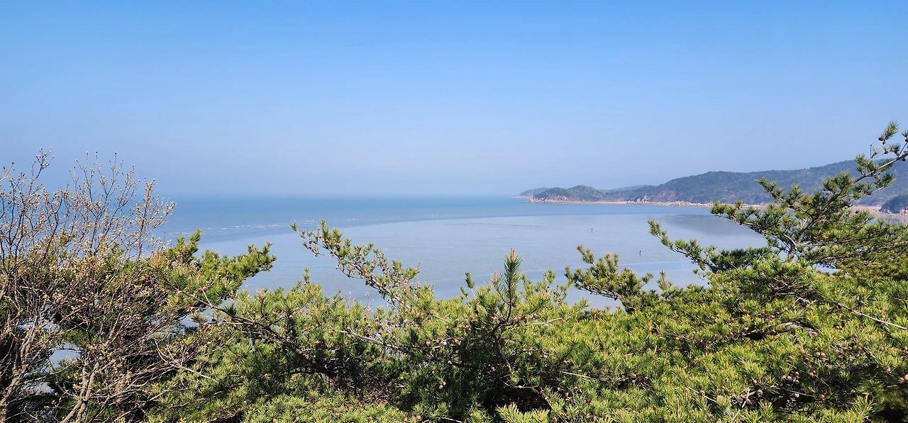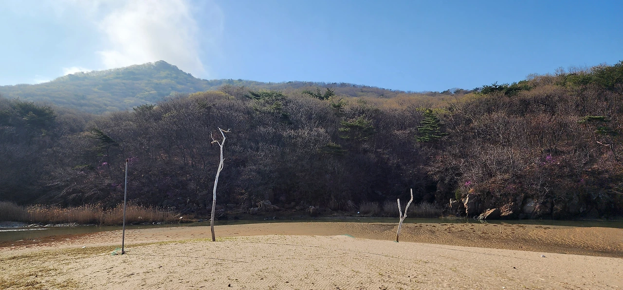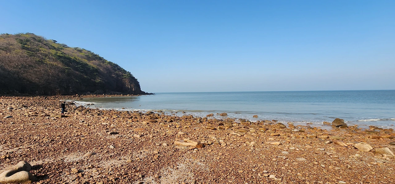 하나개해수욕장은 전엔 입장료를 받았던 모양이나 지금은 무료 입장이었다. 해변이 곧 나타났다. 모래가 곱다. 아직 4월초니 물에 뛰어든 사람은 없었지만... 저녁이 가까웠기에 야영할 장소 물색에 나섰다. 해수욕장 부근은 도무지 그럴 데가 없었다. 평평한 곳도 잘 안 보였지만 사람들이 많아서다. 누가 와서 뭐라 할지 모르니 말이다. 근처 솔밭도 어슬렁거려 보았으나 마땅한 데가 없어 좀 더 산 위로 향했다. 등산로를 가다가 호젓한 곳에 평평한 데가 있어 그곳에 텐트를 쳤다. 해가 지자 기온은 더욱 내려갔다. 얇은 여벌 옷을 여럿 가지고 왔지만 추위를 이겨내긴 턱 없이 부족했다. 밤새 오들오들 떨어야 했다. 얇은 옷 여러 벌은 소용이 없고 두툼한 옷이 필요함을 절감했다. 그건 부피가 커서 엄두를 못 냈는데 어떡하든 그렇게 했어야 했다.