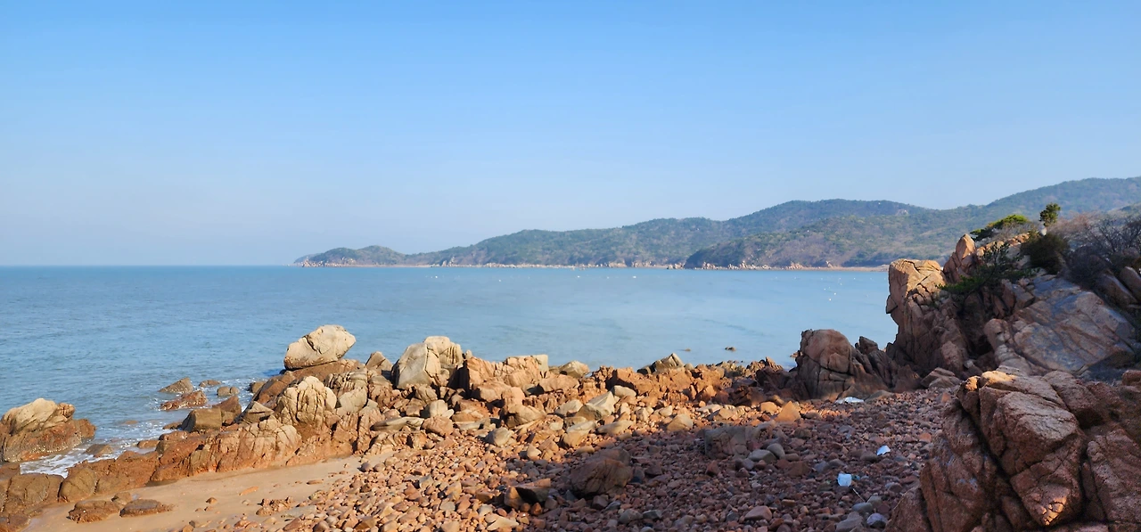 아침에 일어나 장비를 걷어서 철수하고 산을 내려왔다. 해수욕장으로 갔다. 무의도해상관광탐방로가 해수욕장 끄트머리에서 시작됐다. 자전거를 묶어놓고 걷기 시작했다. 곧 계단이 나타나면서 절로 탄성이 터져 나왔다. 바닷가로 탐방로가 개설돼 있어 바다도 보고 육지 쪽의 기암괴석을 볼 수 있었다. 길이가 약 1km쯤 돼 보였다. 그리 길지도 짧지도 않은 적당한 거리다. 왼쪽으로 육지 쪽엔 오랜 세월이 빚어낸 기기묘묘한 바위들이 있었다. 그곳에 사람들은 사자바위, 부처바위, 불독바위, 원숭이바위, 햄버거바위 등 온갖 이름을 다 붙여 놓았고 심지어 총석정도 있었다.