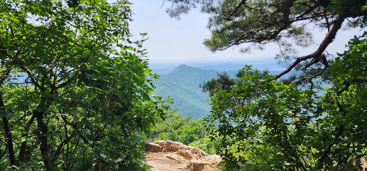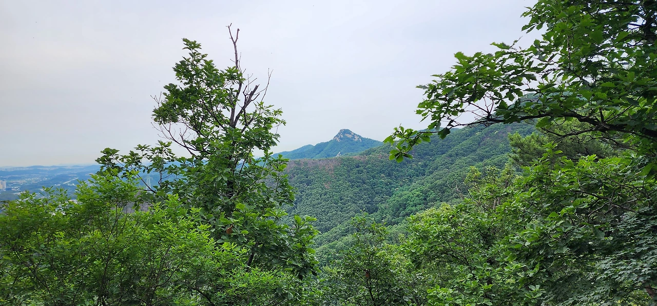 수리산의 주봉은 슬기봉이지만 정작 슬기봉 정상은 올라갈 수 없다. 군부대기 때문이다. 슬기봉 아래로 난 등산로를 걷다 보면 그 높은 곳에 벤치가 있고 그 벤치에서 내려다보는 전망이 괜찮다. 슬기봉에 못 가니 대신 그런 벤치를 제공한 게 아닌가 싶다. 거기선 병목안 방향이 내려다보이는데 숲이 여간 울창하지 않다. 패러글라이딩하는 사람들은 아마 훨훨 날고픈 유혹을 느낄 만한데 패러글라이할 수 있는 활공장은 없다.