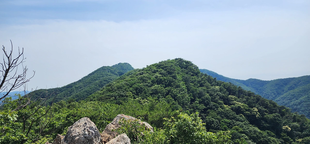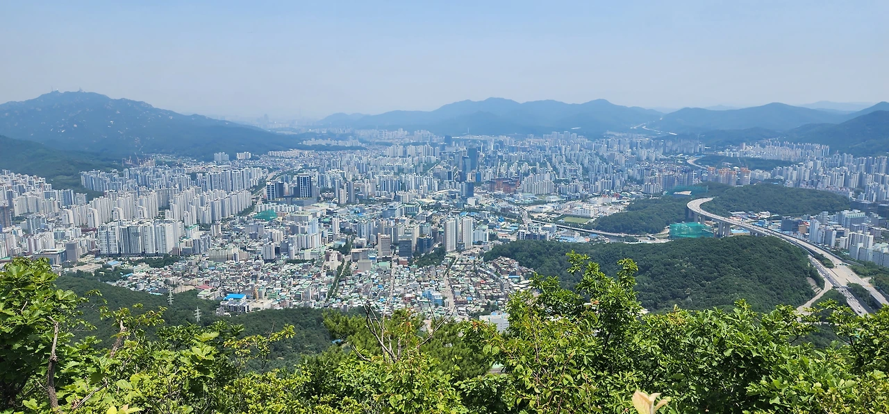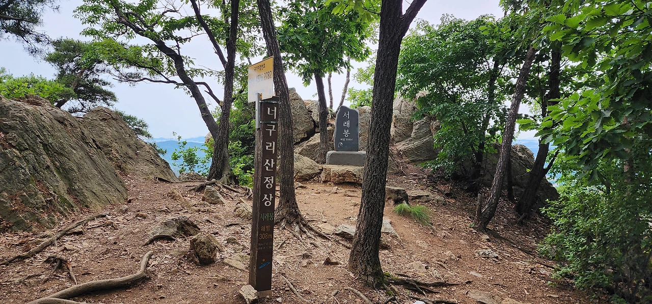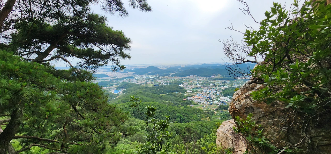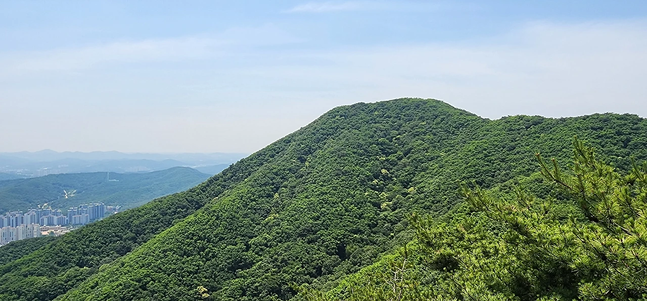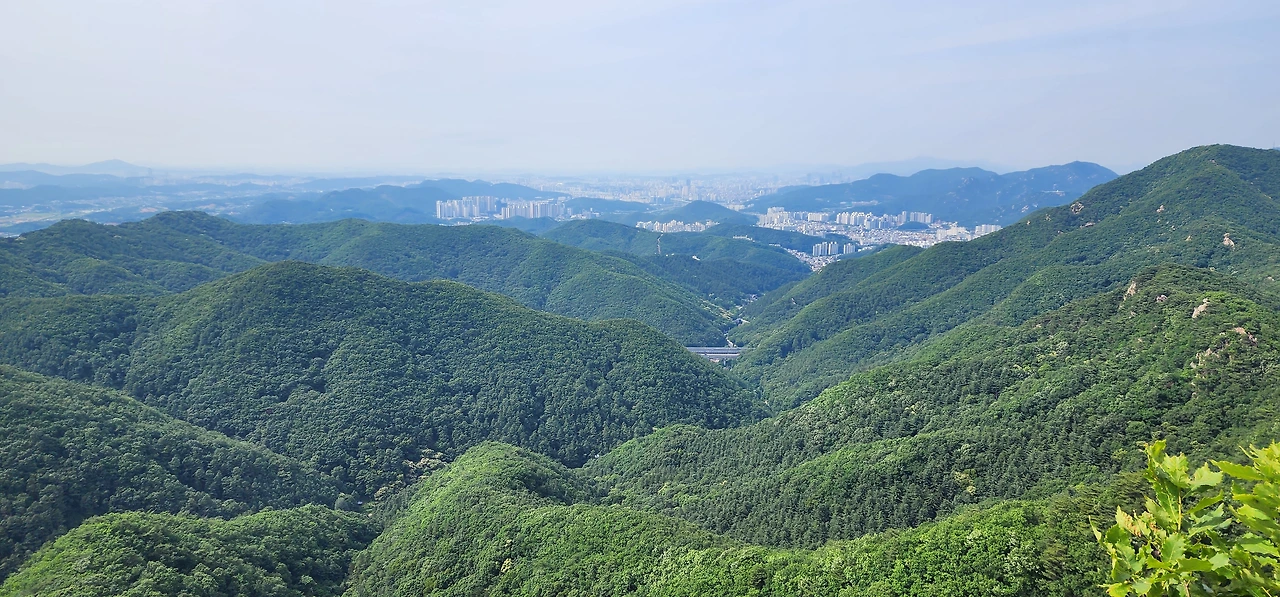 능선길을 따라 걷다가 봉우리를 만나는데 서래봉이라고도 하고 너구리산이라고도 하는 데다. 거기 쉼터가 꽤 넓다. 이젠 안양, 산본은 안 보이고 주로 안산이 보인다. 길은 외통수, 줄기차게 걷다가 보니 굉음이 커졌다. 서해안고속도로와 영동고속도로가 지나는 곳 부근이라 차 소리가 여간 요란하지 않았다.