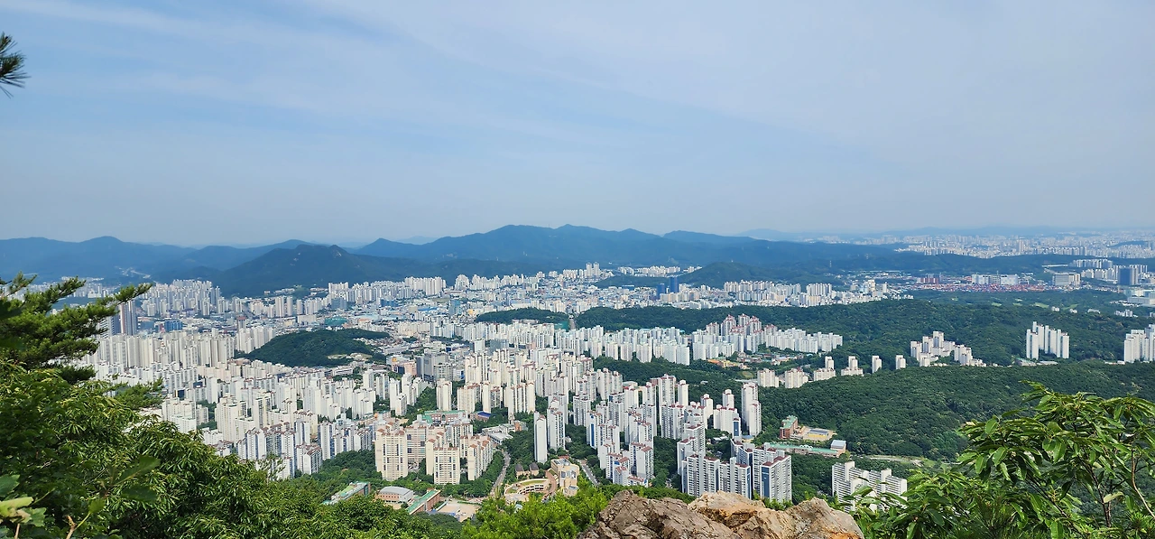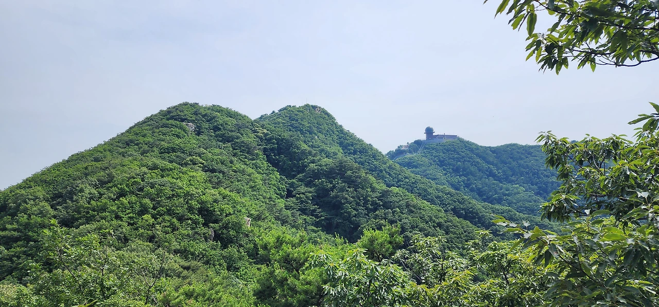 관모봉은 수리산의 북쪽에 있는 봉우리인데 이게 만만치 않다. 쉽게 정상을 내주지 않는다. 가파른 고개를 낑낑거리며 오른 끝에 간신히 봉우리에 올랐다. 태극기가 펄럭이고 사방이 탁 트여 있었다. 안양 시내가 손바닥 위에 있는 듯했다. 아파트 숲 속으로 1호선 전철이 움직이고 있었다. 그뿐인가. 무궁화, 새마을 기차도 같은 길을 달린다. 지지대고개를 향하는 1번 국도는 좀 더 동쪽으로 나 있지만...