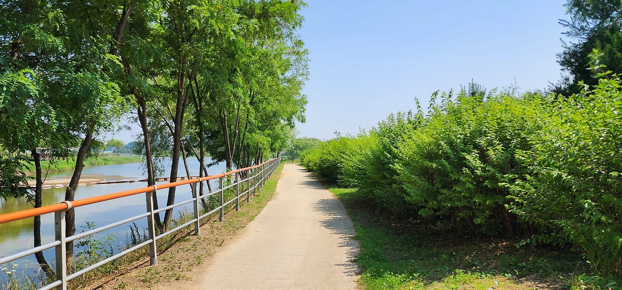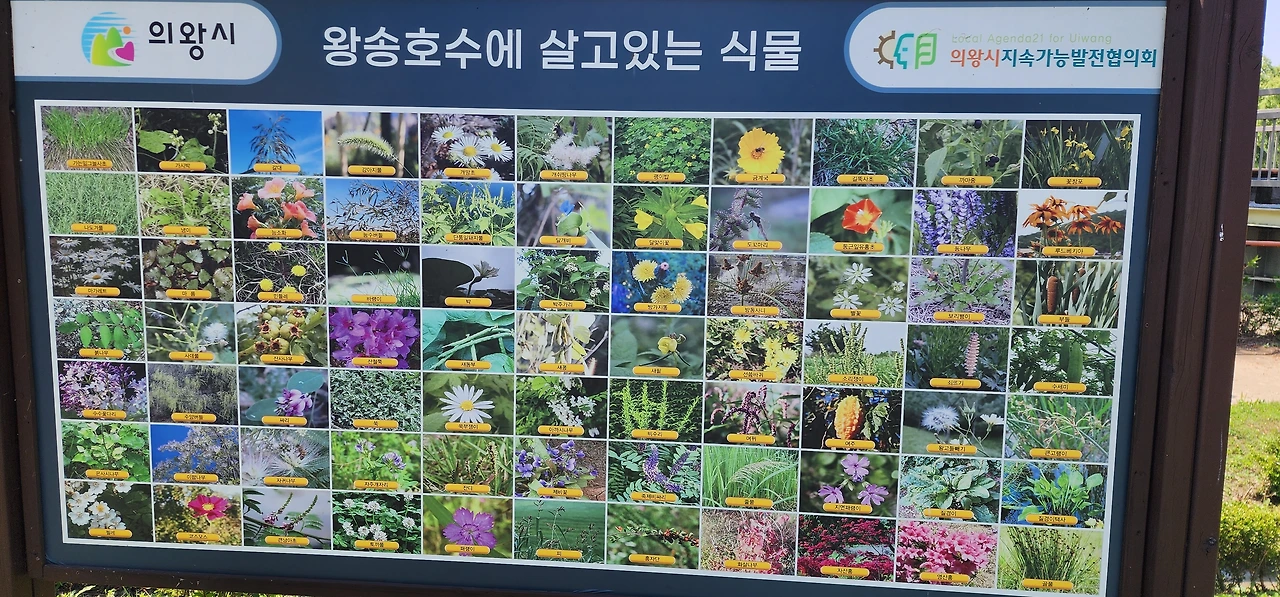 둘레길은 잘 정비가 돼 있었는데 곳곳에 앉아서 쉴 수 있는 시설이 있었다. 5km는 돼 보이는 둘레길은 호숫가 길답게 경사가 전혀 없다. 자전거도 다니지 못하게 해서 편안한 맘으로 걷기에 그저 그만이다. 둘레길 북쪽에 왕송호수에 살고 있는 식물을 소개한 안내판이 있는데 이 호수 주위에 얼마나 많은 식물이 살고 있는지 눈이 휘둥그레질 정도였다. 두 시간 가량 왕송호수 둘레길을 돌면서 참 많은 꽃을 보았는데 큼직하고 강렬한 색채의 무궁화꽃이 인상적이었다.