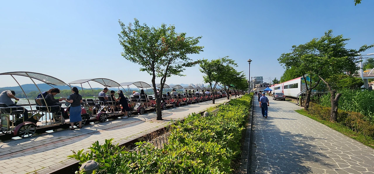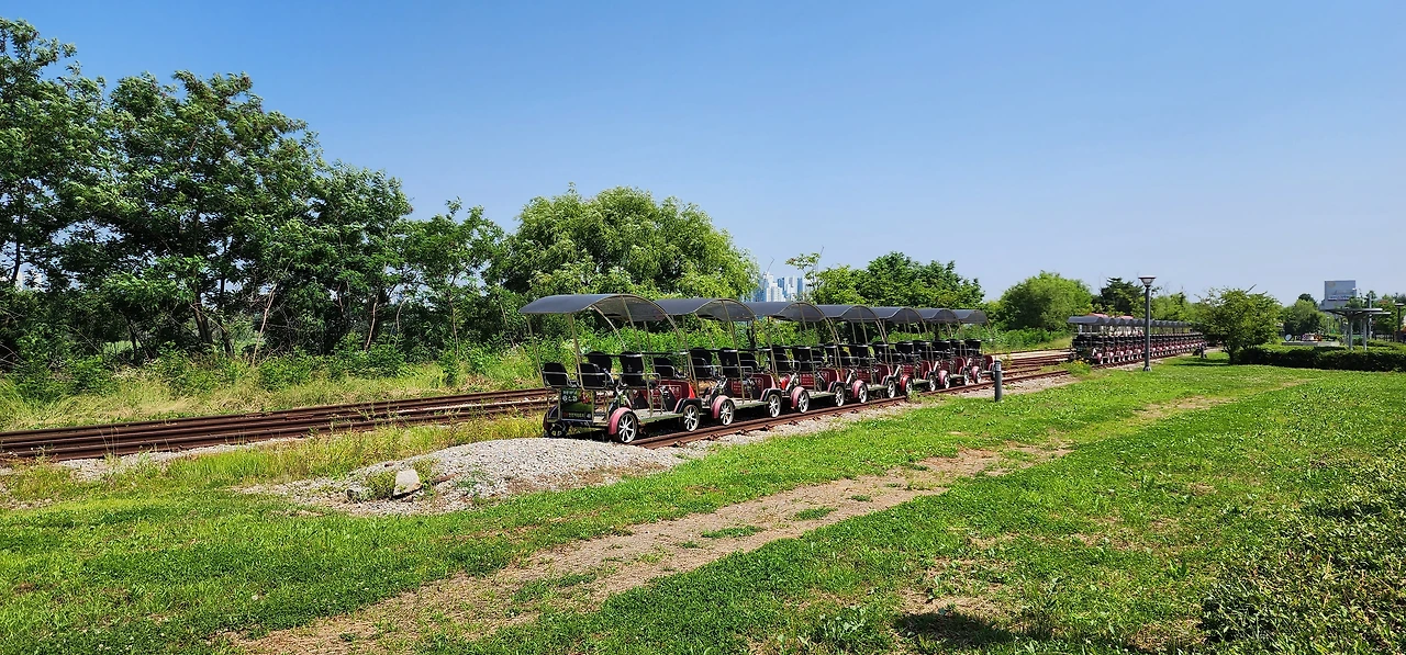 왕송호수에서 특징적인 것은 레일바이크가 호수 둘레를 다닌다는 것이다. 네 사람까지 탈 수 있는 바이크는 발을 굴려야 움직인다. 호수 경관도 즐기면서 적당한 운동도 되는 이 레일바이크를 타려고 참 많은 사람들이 줄을 서서 기다리고 있었다. 아이를 하나나 둘 안고 레일바이크의 페달을 젓는 부부의 모습은 한폭의 그림이었다.
