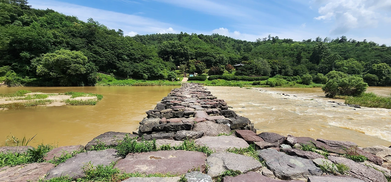 진천에 지인이 공장을 운영하고 있어 방문했다. 낮엔 업무를 방해할 수 없이 일찌감치 도착해서는 진천 농다리를 방문했다. 농다리[籠橋]는 고려초에 만들어진 돌다리라니 역사가 여간 깊지 않다. 개천에 돌을 올려 놓아 사람이 돌을 밟고 건널 수 있게 되어 있는데 돌의 크기가 보통 아니다. 어디서 이렇게 큰 돌을 가져다 놓았을까 신기하기만 하다. 농다리 앞에 이르면 건너편 숲속에 폭포수가 떨어지고 있는데 그 모습 또한 참으로 장관이었다.
