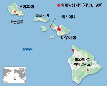 하와이는 세계적인 관광지이고 오아후섬의 와이키키 해변은 특히나 유명하다. 하지만 오아후섬뿐만 아니라 마우이섬, 하와이섬(빅아일랜드) 또한 관광객이 즐겨 찾는다. 그런데 마우이섬에서 큰 화재가 나 제법 번화한 곳인 라하이나가 그만 폐허로 변해 버리고 말았다. 인근의 산에서 난 불이 순식간에 도시를 덮어 버린 모양이다. 바람의 위력이 어느 정도였기에 미처 피할 겨를도 없이 36명이나 되는 사망자가 나왔을까. 흔히 핵폭탄이 떨어지면 석기시대로 돌아간다고 한다고 하는데 그런 꼴이 아닌가 싶다. 도시가 다 타버렸으니까.