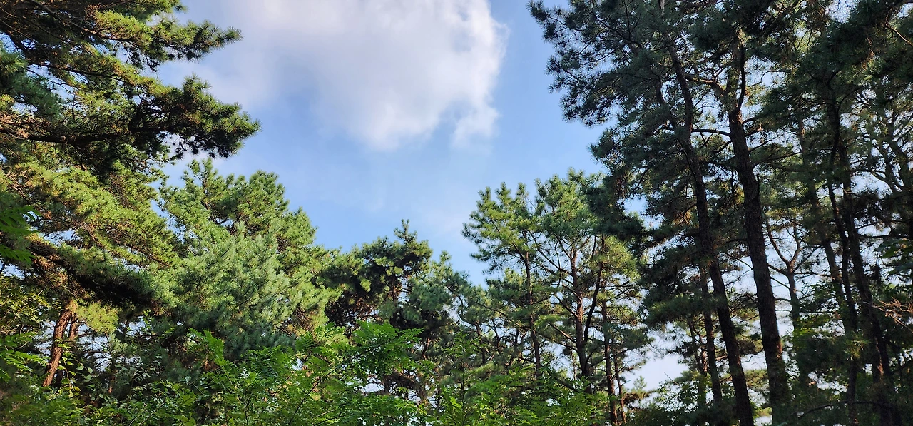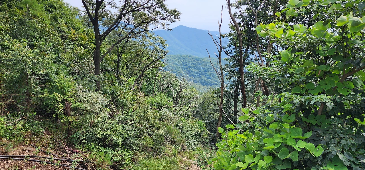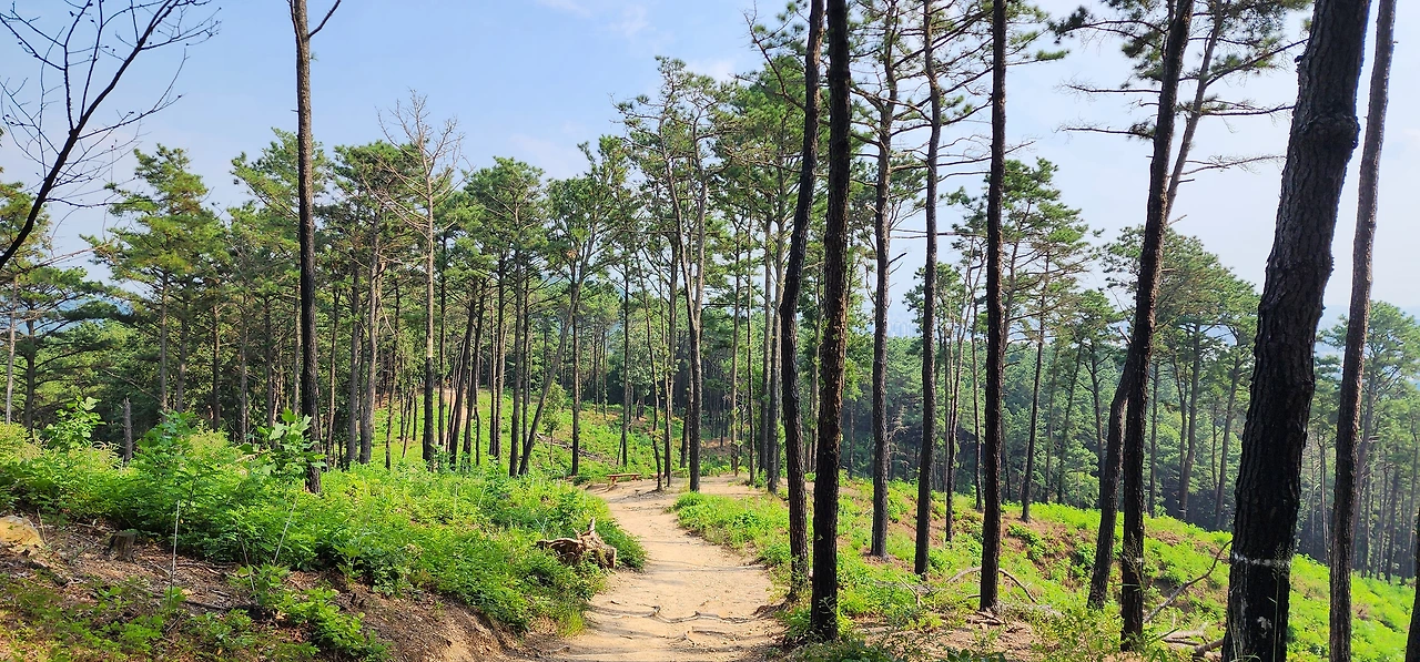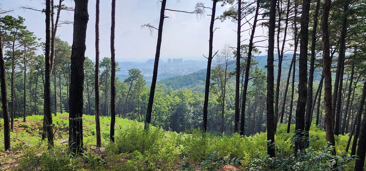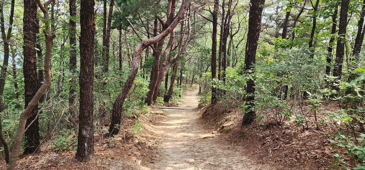 지지대고개로 내려갈 생각을 하고 하산을 시작했다. 통신대헬기장 부근에 너른 쉼터가 있어 많은 사람이 쉬고 있었다. 하산길을 재촉하는데 경사가 완만하고 게다가 고요하기까지 하니 걷기에 더없이 좋다. 그런데 그만 길을 잘못 들고 말았다. 지지대고개로 가려면 광교헬기장에서 그쪽 가는 길을 타야 하는데 그만 지나치고 말았다. 한참을 가다 앱을 켜서 보니 엉뚱한 데로 가고 있지 않은가. 되돌아갈까 하다가 그냥 그대로 가기로 했다. 지지대고개를 포기했다.