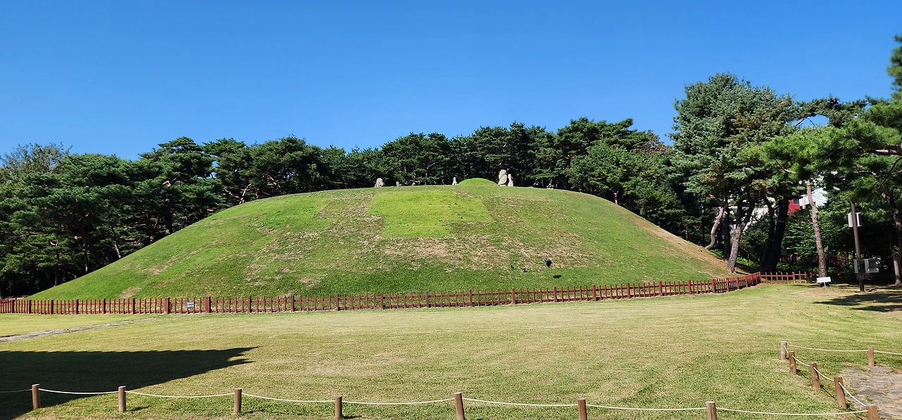 해설을 들으며 많은 용어를 접했다. 혼유석은 혼이 뛰노는 돌이라는 뜻인데 능 앞의 넓적하게 생긴 거대한 돌이다. 저리 큰 돌을 어떻게 들어 올렸을까 잘 상상이 안 간다. 왕릉을 세우다가 수많은 사람이 죽었다는데 그럴 수밖에 없었겠다. 문석인, 무석인, 망주석, 장명등, 병풍석, 난간석 ... 이 중에서 문석인, 무석인이 특이하다. 그동안 문인석, 무인석으로 알고 있었는데 그게 아니다. 문석인, 무석인이란다.