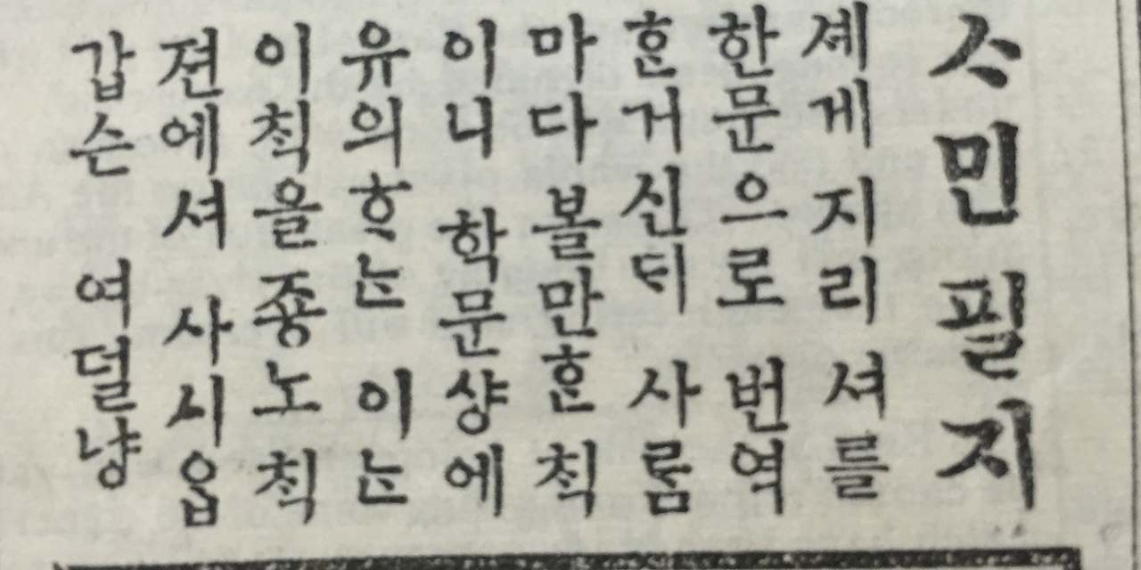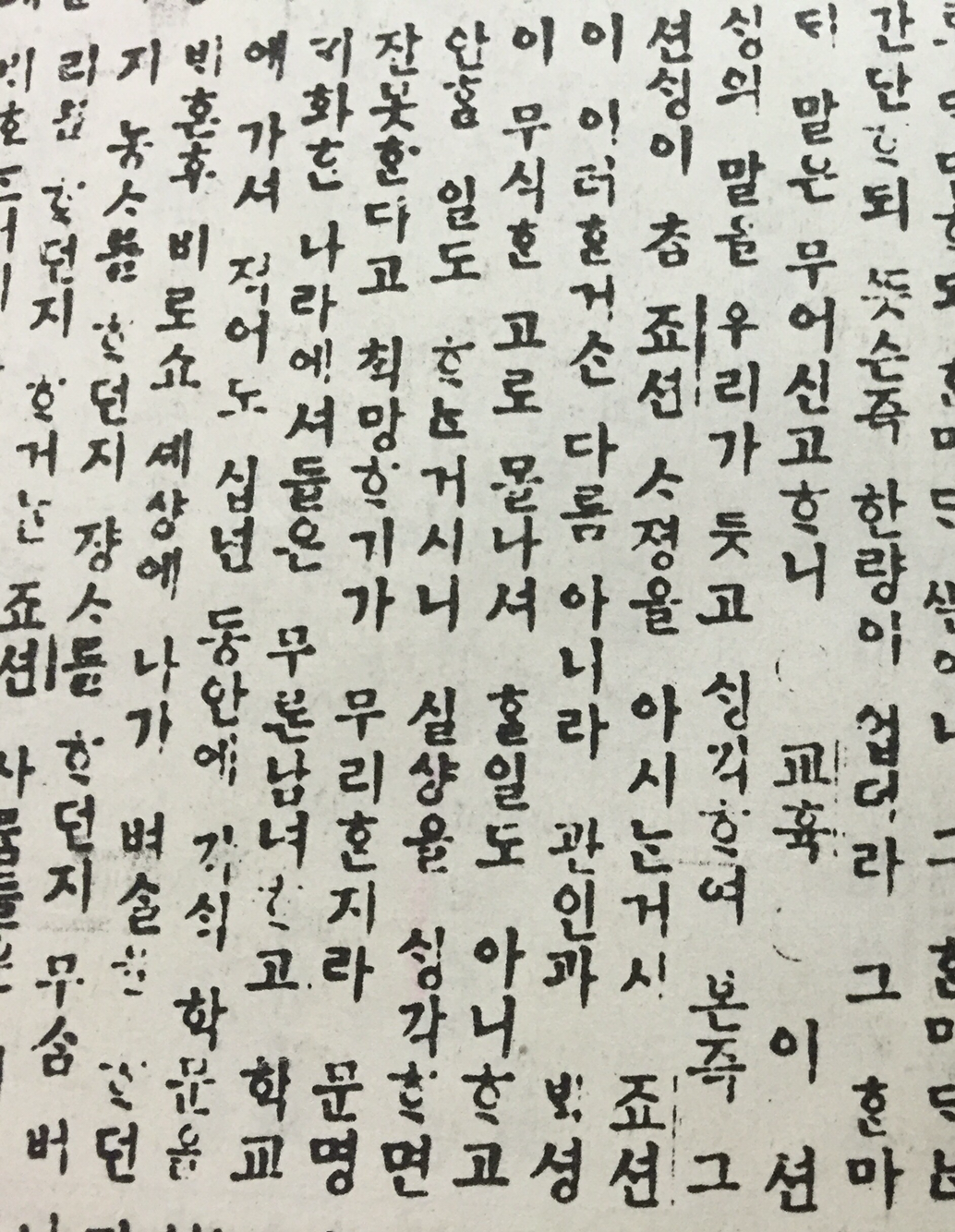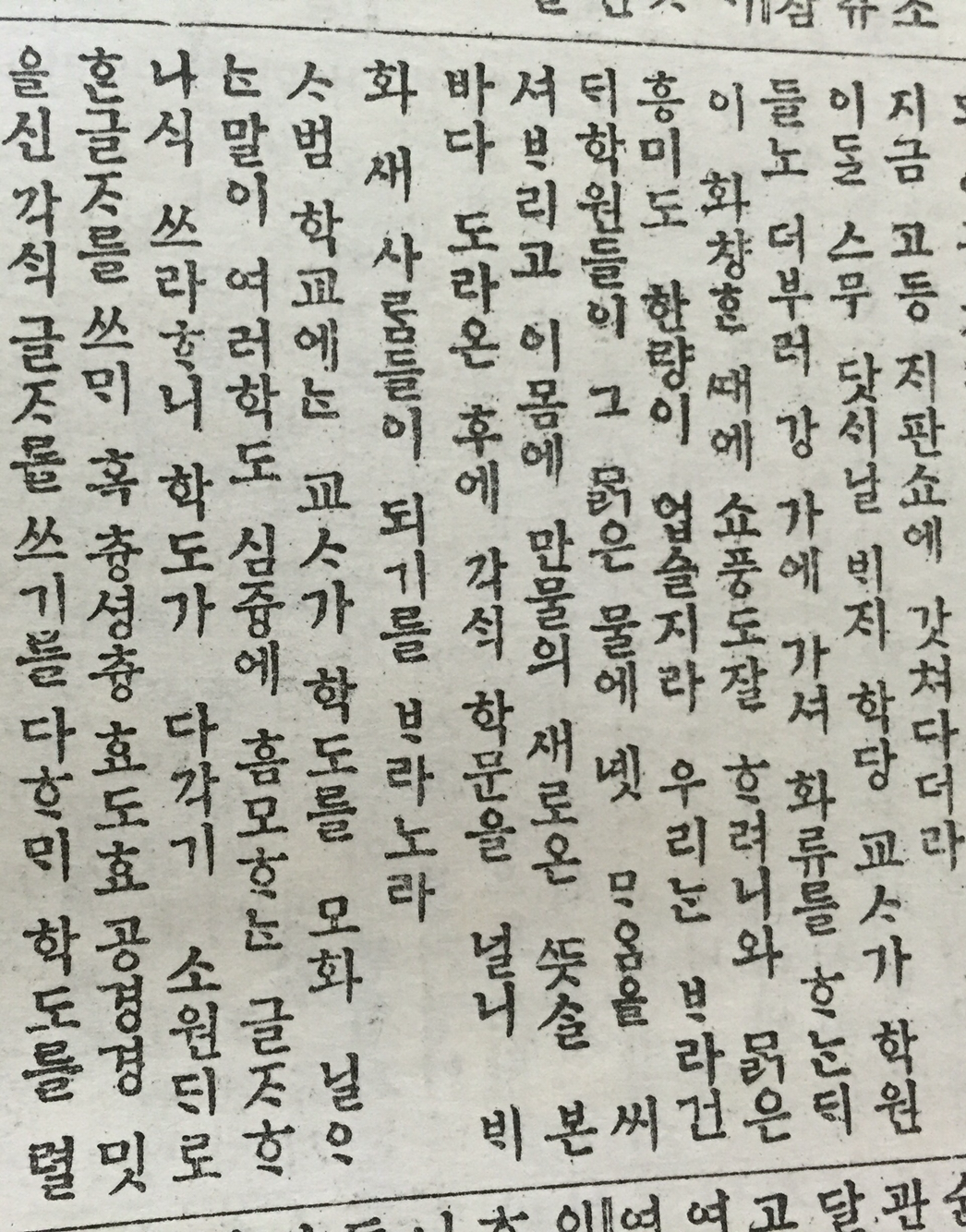 1896년 4월 25일자 독립신문(제9호)은 논설에서 '교육'의 중요성을 매우 강조하고 있다. 우선 '교육'을 시종일관 '교휵'이라고 적고 있는 것이 매우 인상적이다. 이 논설에서 '학교', '선생'과 같은 말을 쓰고 있으니 오늘날과 같다. 그런데 '학생'은 안 보이고 '학원'(學員), '학도' 같은 말을 쓰고 있는 점이 지금과 다르다.