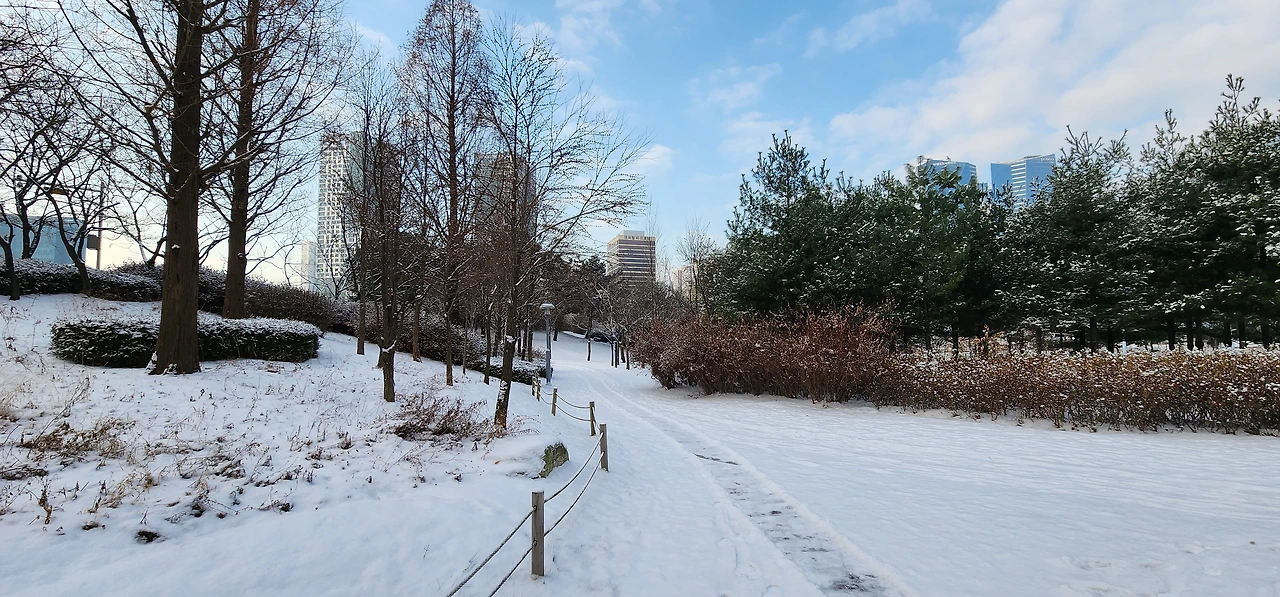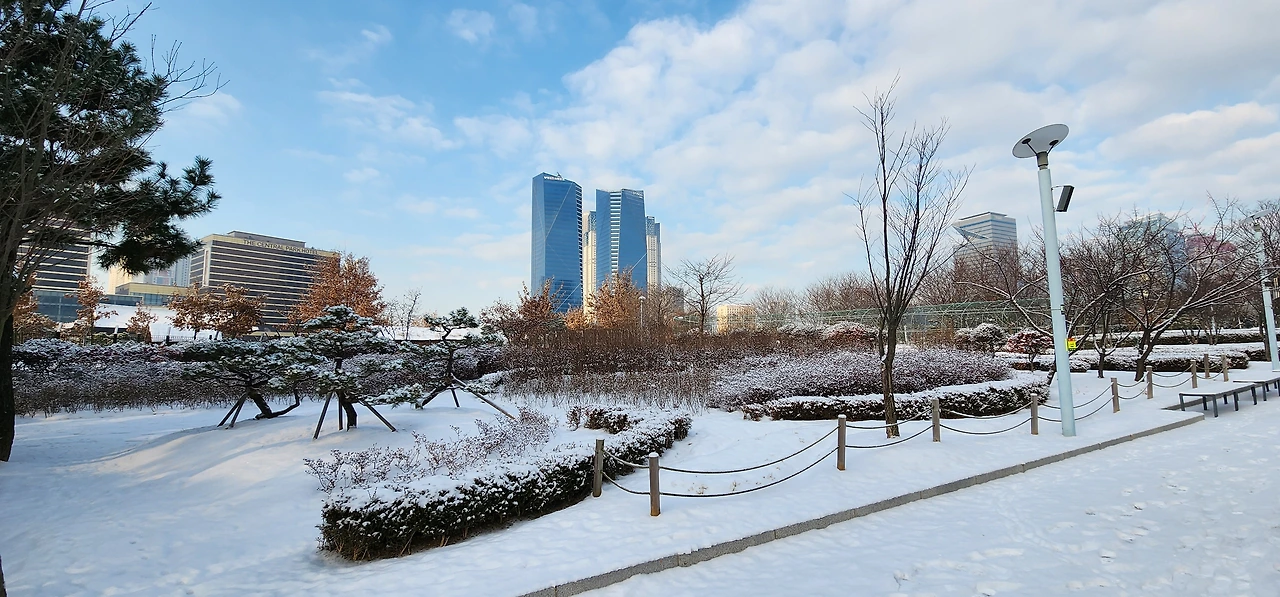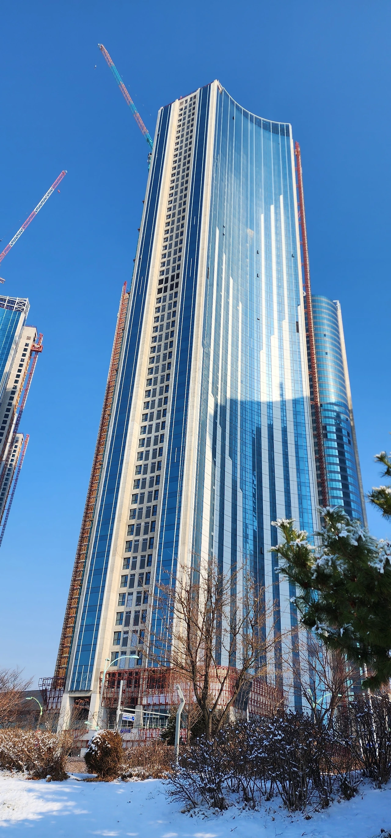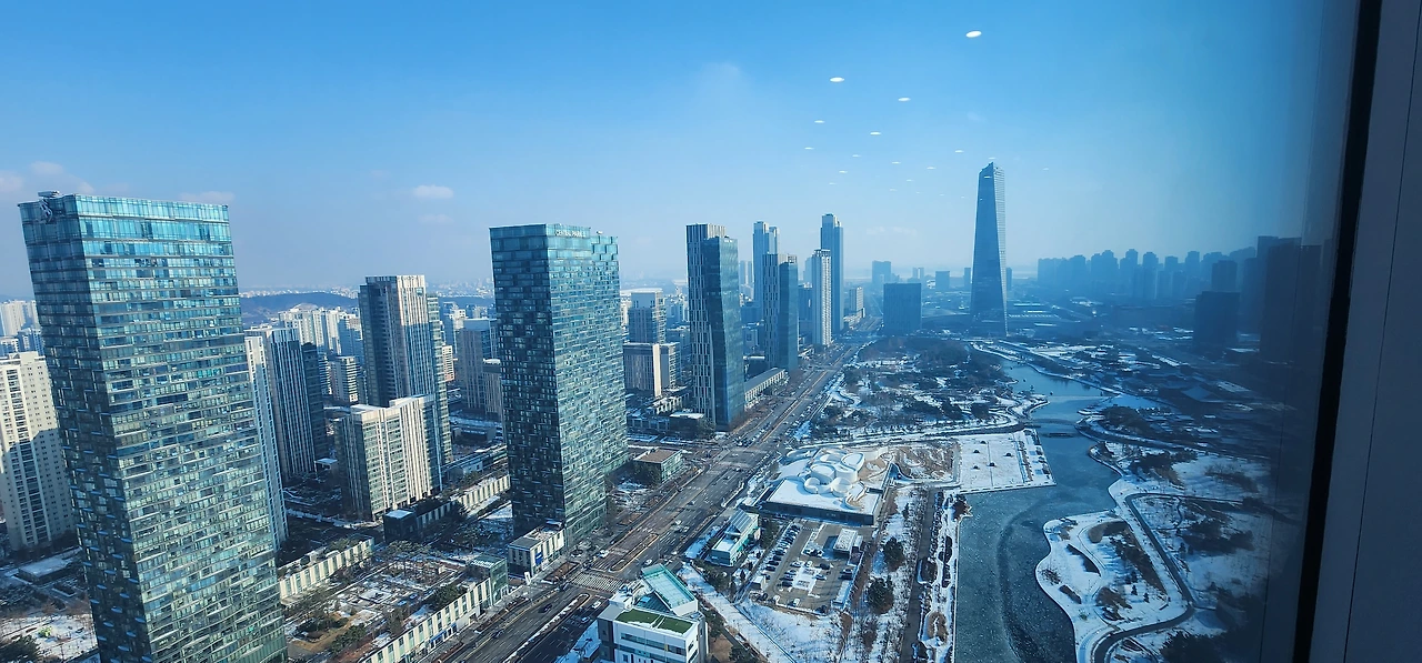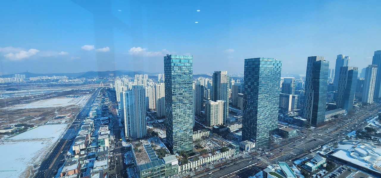 이어서 G타워에 갔으나 1시부터 문을 연다 해서 나왔다. 거대한 랜드마크씨티3호수변공원 한 바퀴를 돌았다. 아직 채 다듬어지지 않았다. G타워로 돌아와 엘리베이터를 타고 33층 높이의 전망대에 올랐다. 사방팔방이 다 내려다 보였다. 장관이었다. 센트럴파크는 바로 앞에 있었고 저 멀리 구송도와 청량산도 보이고 영종도로 넘어가는 인천대교도 보였다.