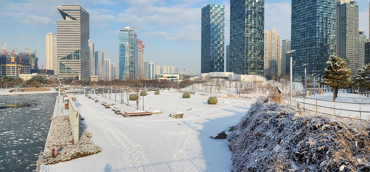 송도에서 자연은 잘 보이지 않는다. 숲도 있고 호수도 있지만 다 인공적이다. 무엇보다 인공적인 것은 거대한 빌딩 숲이다. 건물들 디자인이 모두 개성 있어 지루하지 않을 뿐 송도는 거대한 인공도시다. 신은 자연을 만들었고 인간은 도시를 만들었다. 송도는 엄청난 도시였다. 두바이가 이 비슷할까.