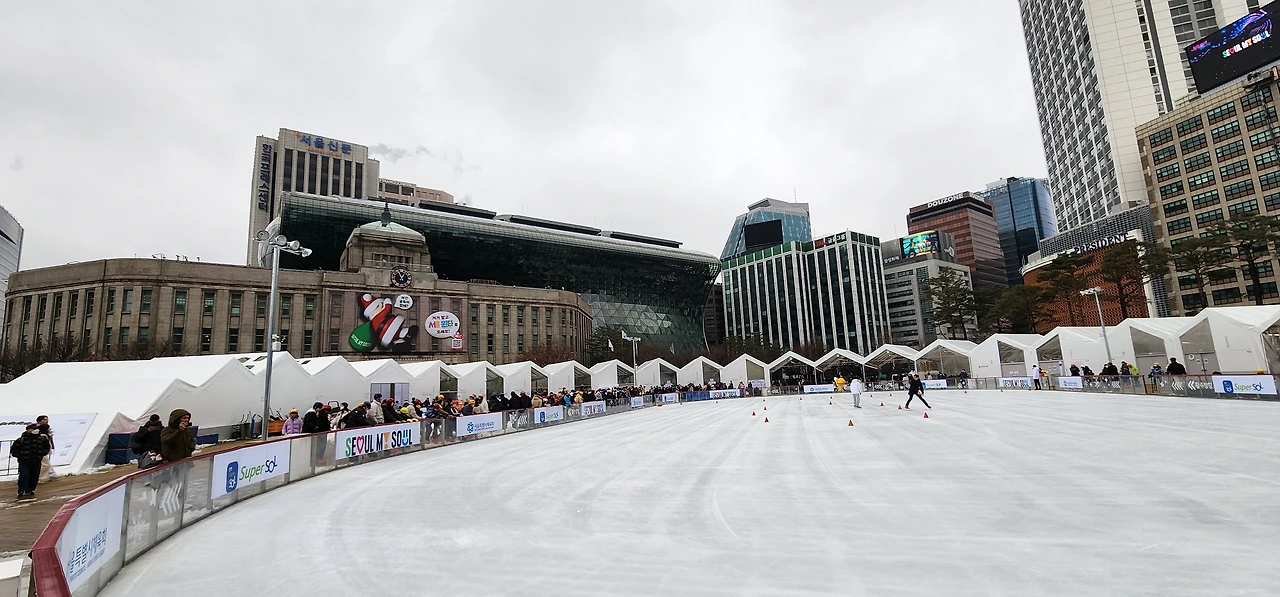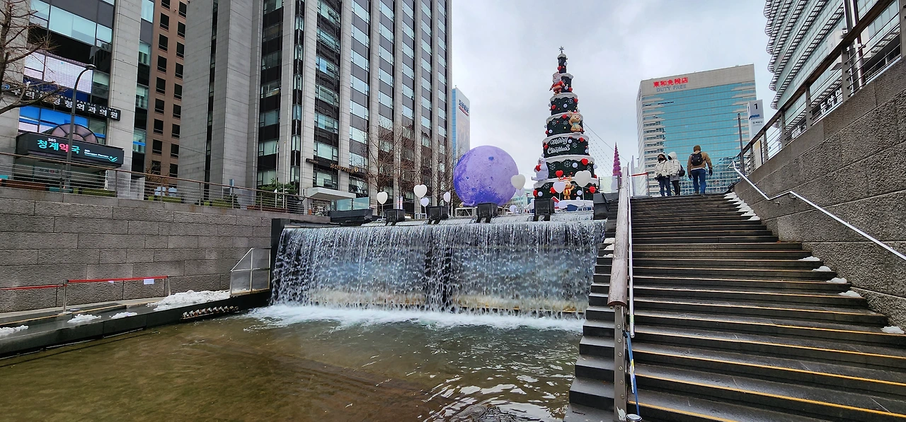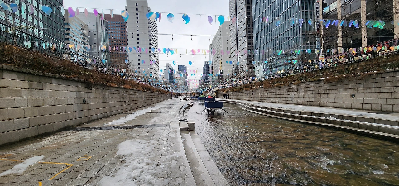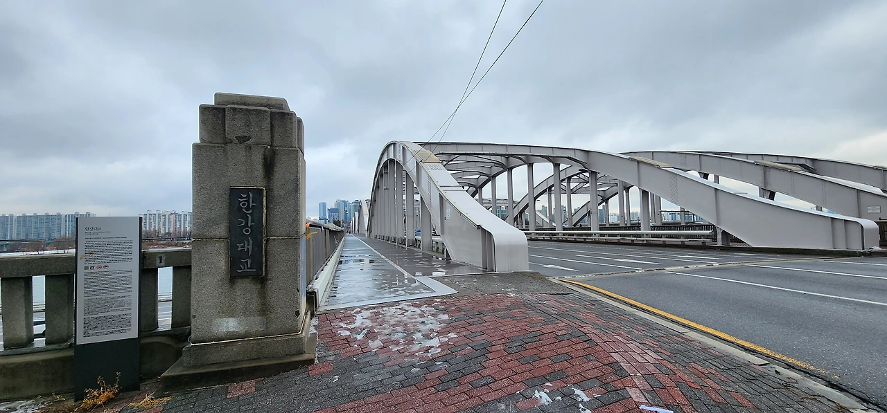 도중에 노들섬 부근에 굉장히 특이한 표지가 다리에 새겨져 있다. 단기 4289년 5월 복구라 적혀 있었다. 1958년 5월에 한강대교가 복구됐을 때 새겨진 것 같다. 나 태어나기도 전이다. 드디어 한강을 건넜다. 신용산역, 삼각지역도 지나고 남영역 부근을 통과해서 서울역 앞에서 남대문으로 향했다. 그리고 서울시청 앞 광장에 이르렀는데 아이스링크가 그곳에 있었다. 청계천을 좀 걷다가 길이 질척질척해 도저히 걸을 수 없었다. 광통교, 광교, 장통교를 차례로 지난 뒤 삼일빌딩 앞으로 올라와 원남동사거리, 혜화동로터리 지나 드디어 한성대입구역에 다다랐다. 그리고 곧 목적지인 옛날중국집에 이르니 7시간 27분이 지나 있었다. 오후 2시 반 가까웠지만 다행히 음식점은 영업 중이었고 손님이 여간 많지 않았다. 짜장면 맛이 꿀맛이었다.
