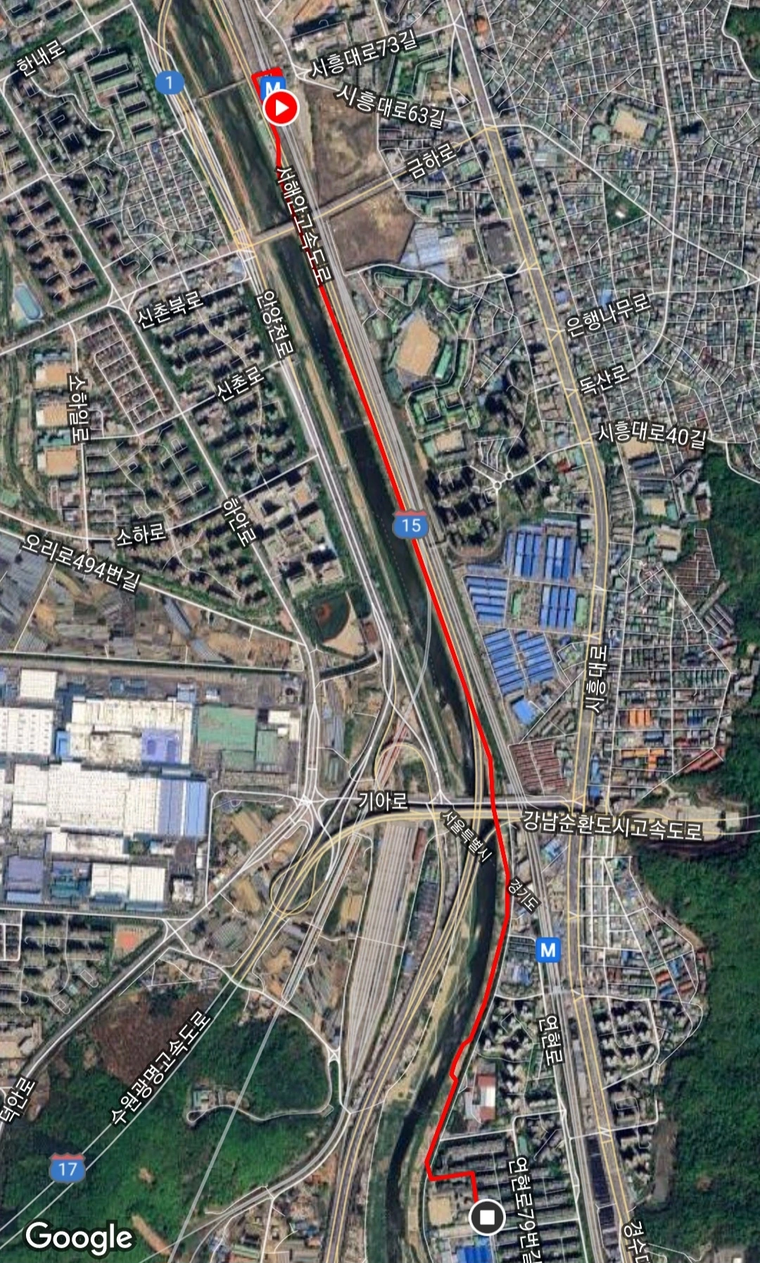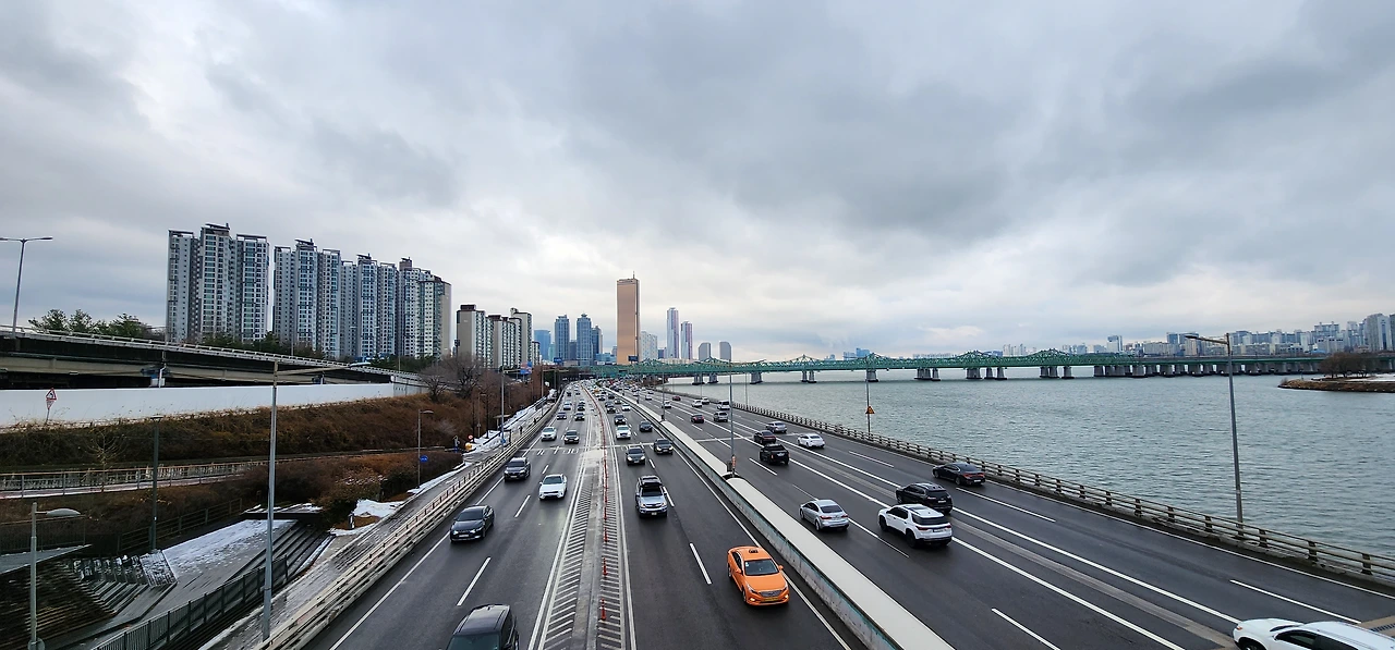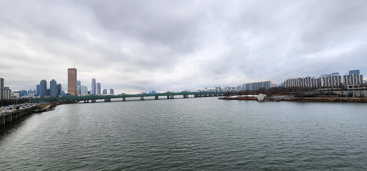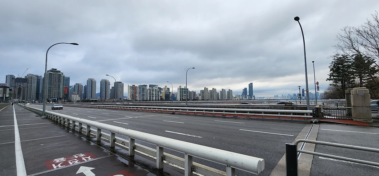 처음 한 시간 이상은 비가 부슬부슬 내리는 가운데 걸었다. 처음부터 비옷을 입고 출발했다. 가산디지털역 부근에 이르니 비가 그쳐 비옷을 벗었다. 남구로역, 대림역을 지나치고 도림천을 따라 걸으니 신도림역이 나왔다. 영등포역을 지나서는 영등포로터리를 통과하는 것이 난관이었다. 자그만 샛길까지 치면 무려 여덟 갈래로 갈라지는 곳이 영등포로터리고 모든 길에 횡단보도가 있는 게 아니기 때문이었다. 다행히 별 시행착오 없이 잘 통과했고 신길역, 대방역, 노량진역, 노들역을 지나 드디어 한강대교에 이르렀다.
