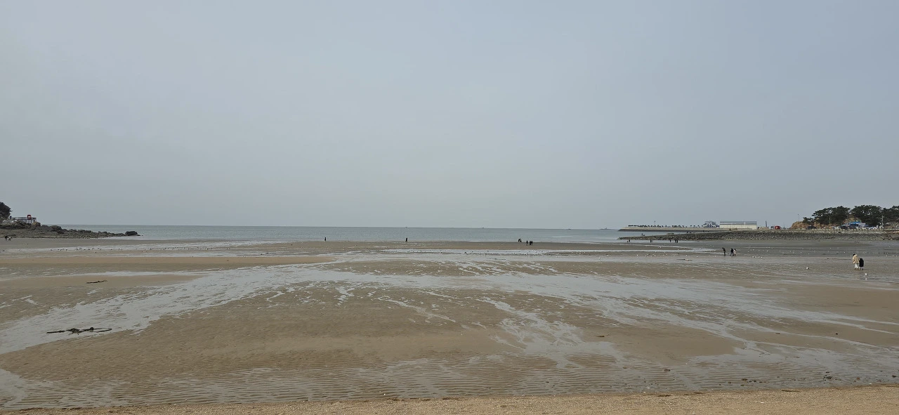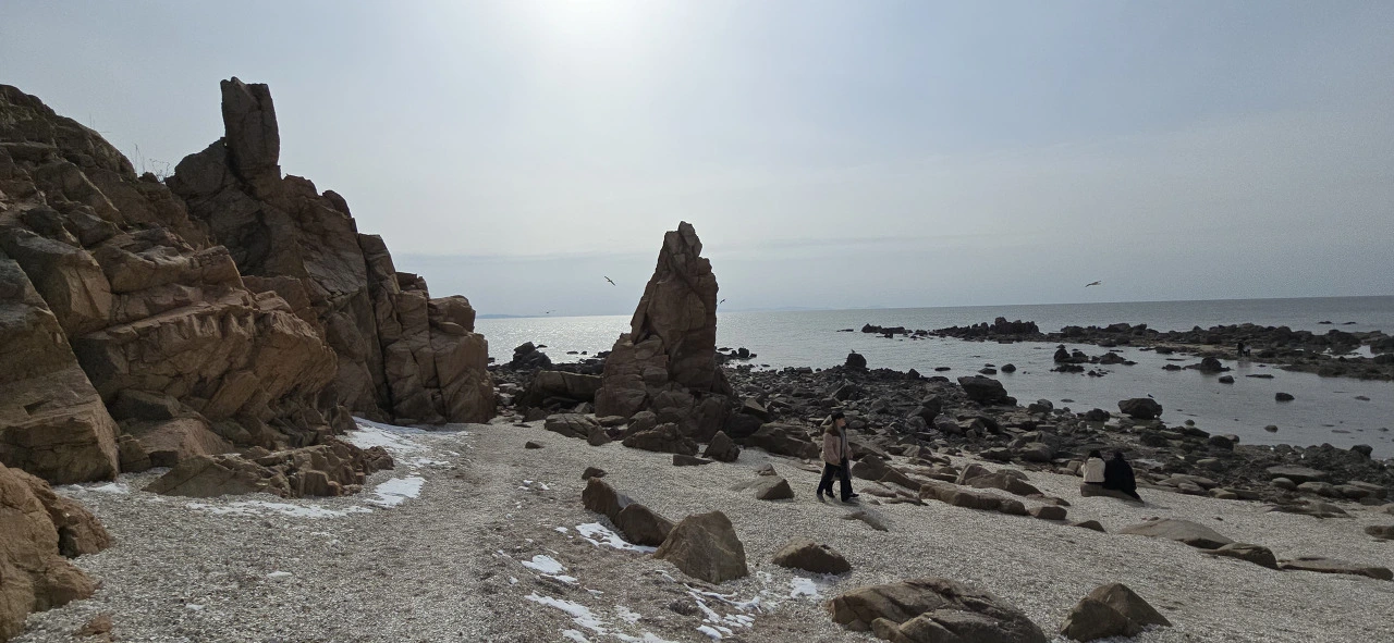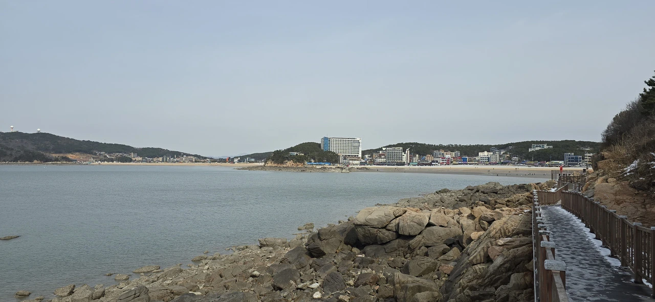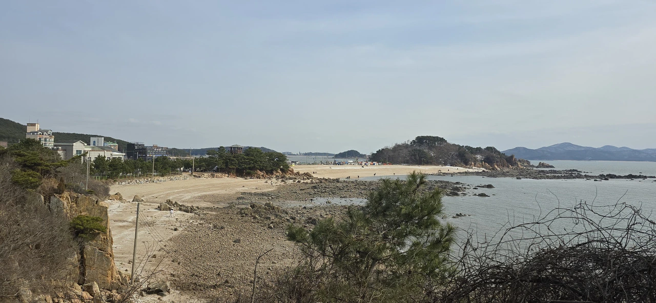 메이드림을 나와 본격적으로 용유도 해변 탐방을 시작했다. 먼저 왕산해수욕장에 들렀고 언덕을 넘으니 더 유명한 을왕리해수욕장이 나타났다. 이곳에 횟집, 카페 등이 여간 많지 않다. 드넓은 해수욕장 모래밭을 걷다 보면 해안 따라 산책로가 나 있어 저절로 그 길을 따라 걷게 되고 끝까지 가면 산을 오르게 돼 있어 계단을 올라 야트막한 산에 나 있는 등산로를 걸었다. 산 너머의 선녀바위해수욕장 가는 길이다.
