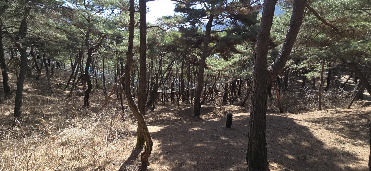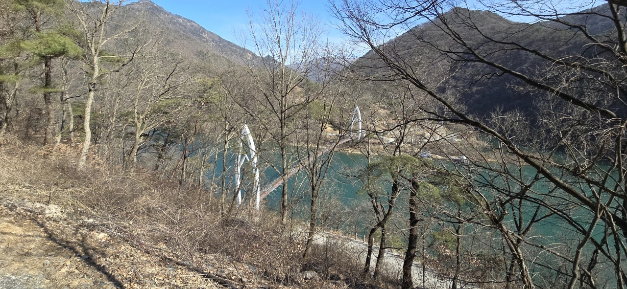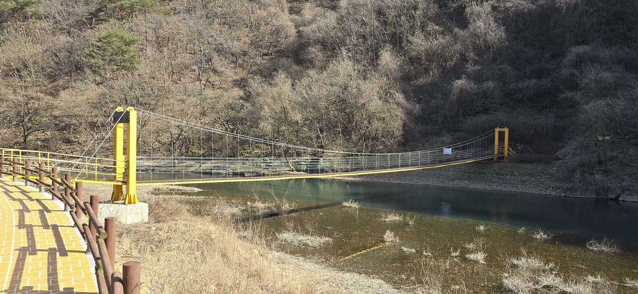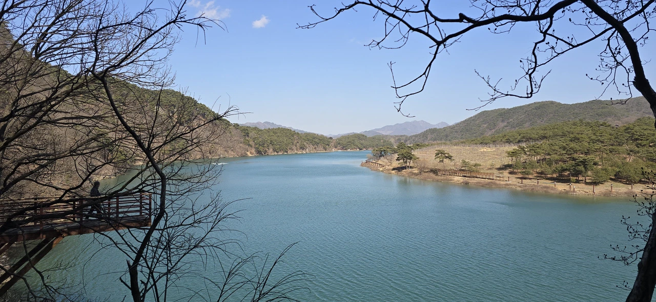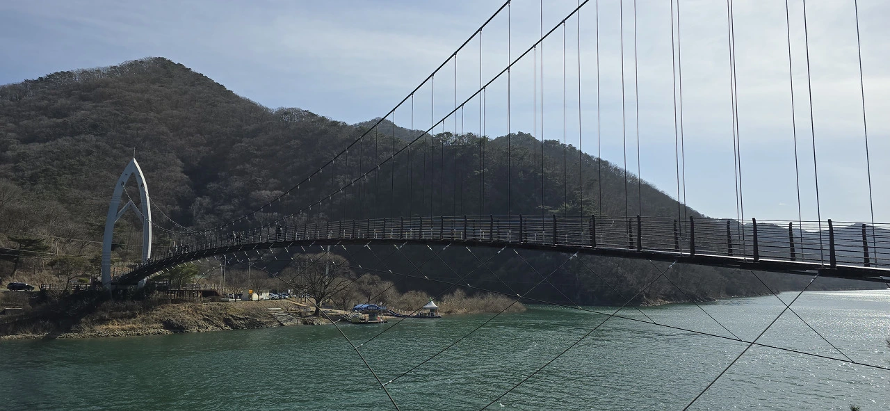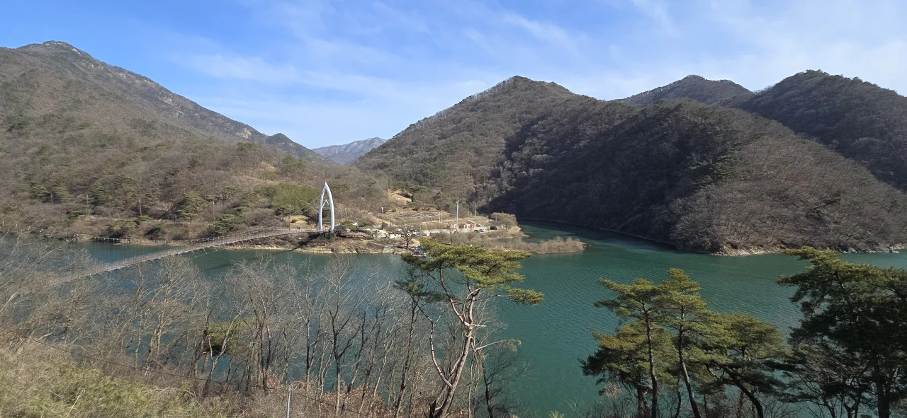산막이옛길은 괴산댐 호수 주변의 산길 산책로다. 입구에서 산막이마을까지가 약 3km이고 거기서 1.2km 더 가면 출렁다리가 나오는데 연하협구름다리다. 산막이마을에서 연하협구름다리까지는 길이 좁아져서 편안하게 산책하기는 쉽지 않다. 연하협구름다리는 굉장히 긴 편도 아니지만 그렇다고 짧지도 않다. 구름다리를 건너면 큰 주차장이 있다. 좀 아쉬운 건 구름다리 건너서 카페나 식당이 없다는 것이다. 그런 곳은 이미 지나온 산막이마을에 죄다 모여 있다.