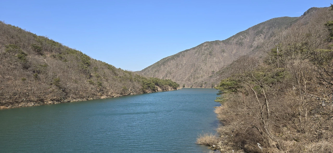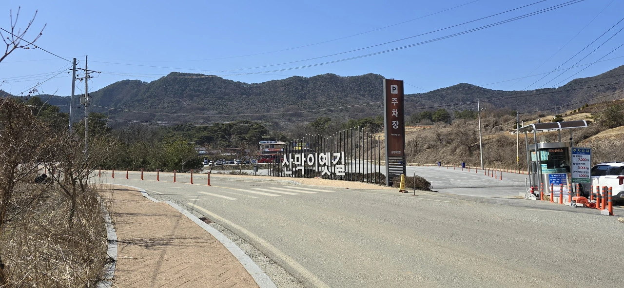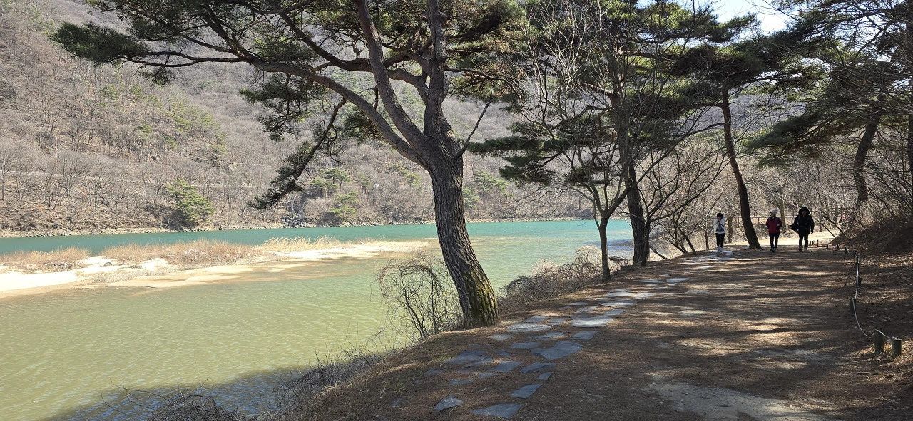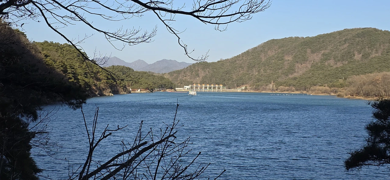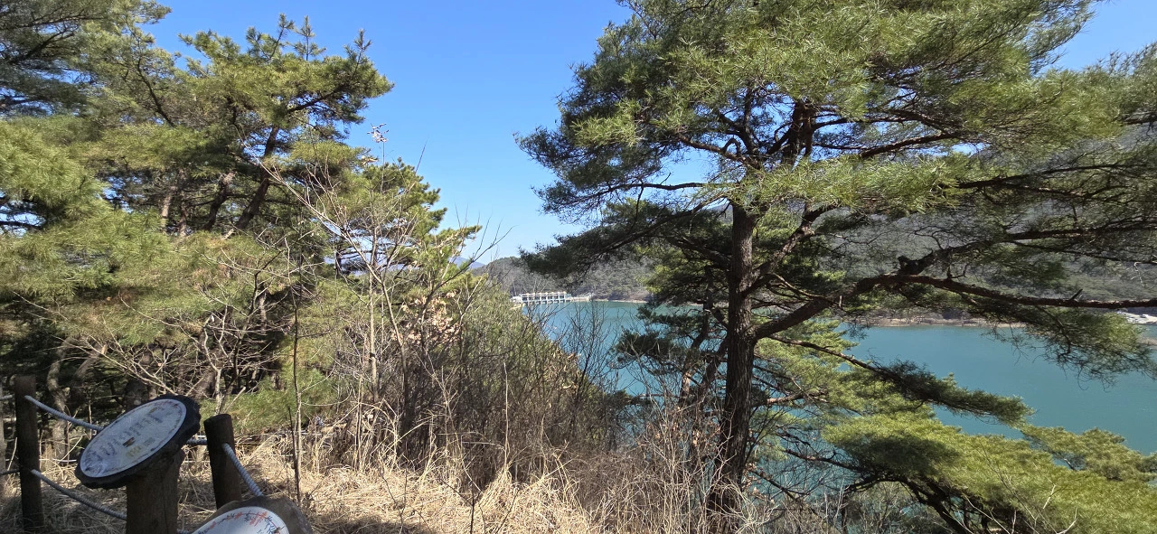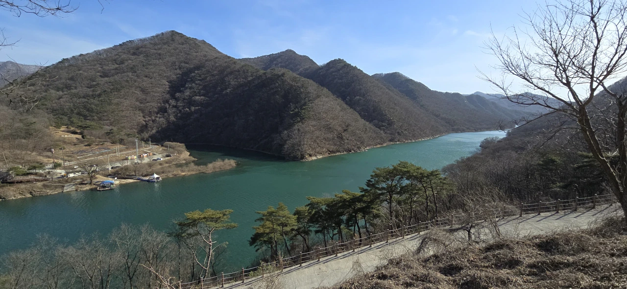 버스를 잘못 내려서 율원리 학동에서 출발했는데 다행히 산막이 가는 표지판이 있어 그걸 보고 줄기차게 걸으니 수전교가 나왔다. 거기서부턴 길도 넓고 안내판이 잘 돼 있었다. 괴산댐 입구를 지났다. 수력발전소다. 산막이옛길 주차장은 대단히 넓다. 괴산군에서 아주 크게 차려 놓았다. 제법 가파른 언덕을 오르면서 산막이옛길이 시작된다.