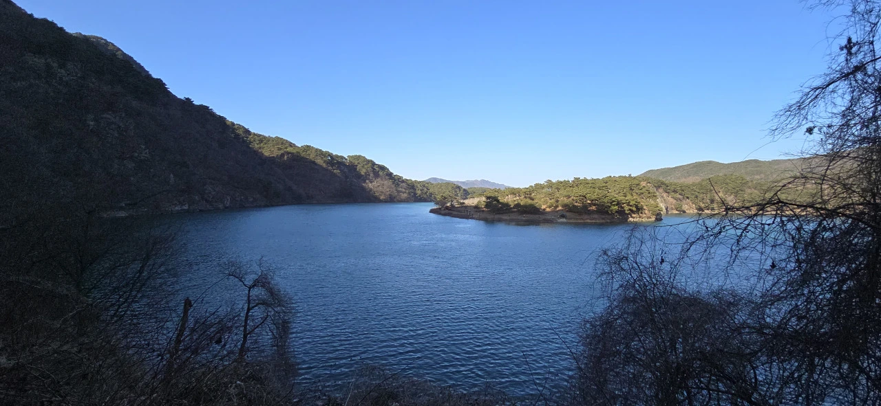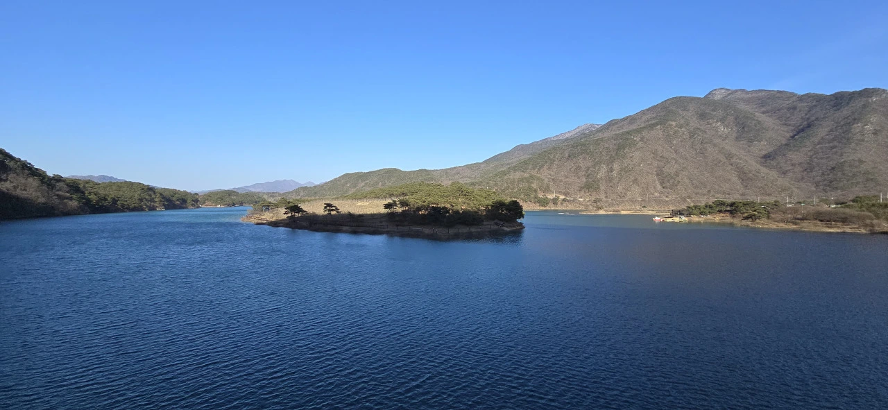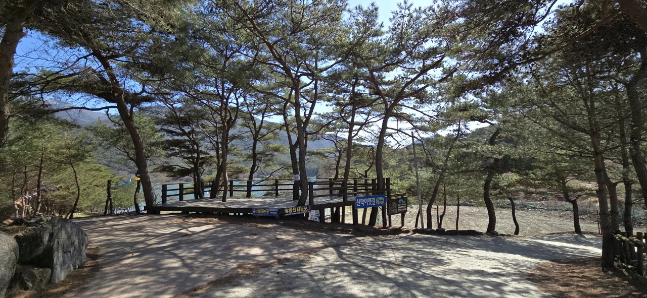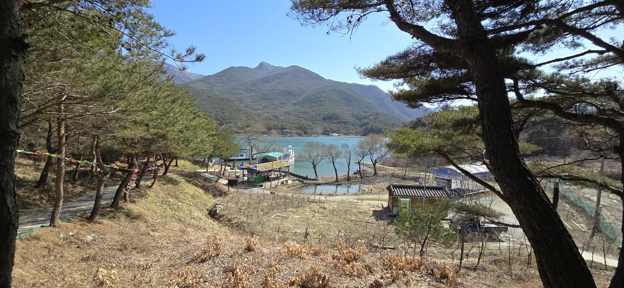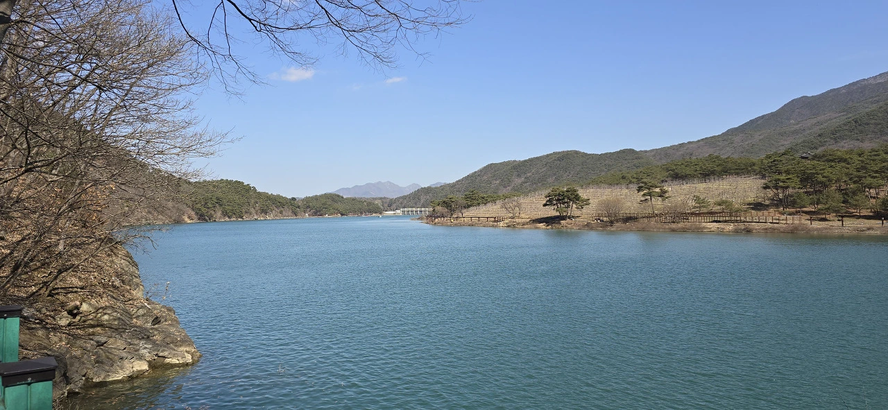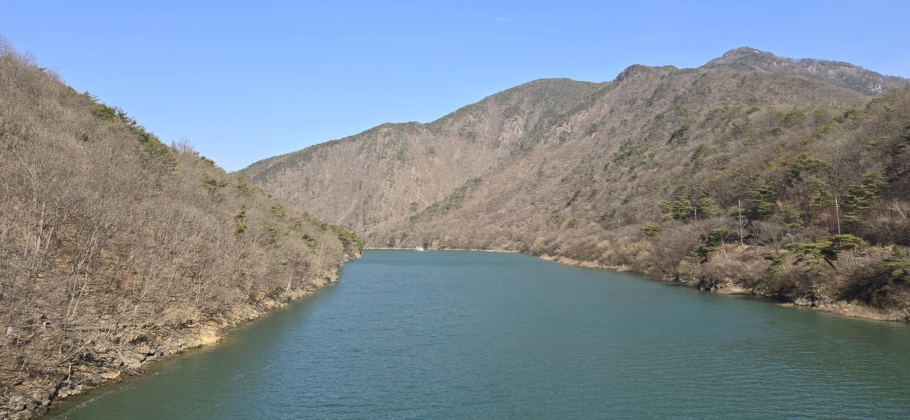버스를 잘못 내려서 율원리 학동에서 출발했는데 다행히 산막이 가는 표지판이 있어 그걸 보고 줄기차게 걸으니 수전교가 나왔다. 거기서부턴 길도 넓고 안내판이 잘 돼 있었다. 괴산댐 입구를 지났다. 수력발전소다. 산막이옛길 주차장은 대단히 넓다. 괴산군에서 아주 크게 차려 놓았다. 제법 가파른 언덕을 오르면서 산막이옛길이 시작된다.