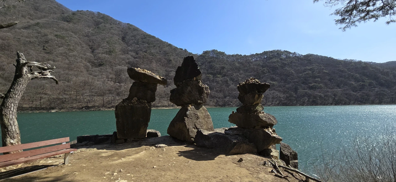 산막이옛길의 예전 모습은 어땠을까. 괴산댐이 생기기 전에도 아마 좁은 길이 있었지 않을까 싶고 그 길을 괴산댐이 생긴 후로 좀 더 넓히고 걷기 편하게 만들었을 것 같다. 군데군데 쉼터도 만들고 호랑이며 사슴 같은 조형물도 세워 놓고 말이다.
