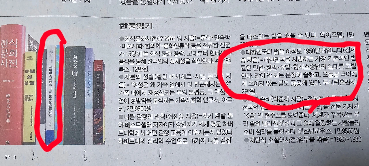 그런데 필자의 책 <대한민국의 법은 아직도 1950년대입니다>가 한 신문의 신간 소개에 났다. 어려운 관문을 뚫고 짤막하게나마 소개되었다. 왜였을까 생각해 보았다. 우선 책의 제목 선택이 괜찮았던 것 같다. 대한민국의 법이 아직도 1950년대라니? 그게 사실이라면 얼마나 놀라운 일인가! 지금이 2020년대인데 법은 1950년대라니! 그런데 그게 사실이다. 법조계가 얼마나 보수적인지를 잘 보여준다. 민법 제162조 "채권은 10년간 행사하지 아니하면 소멸시효가 완성한다."는 말인가 방군가. 이런 엉터리 문장이 1958년 만들어지고 지금까지 요지부동 그대로다. 대한민국의 법이 1950년대가 아니고 뭔가. 이런 예는 수많은 오류 중 하나에 불과하다. 그밖에도 지천으로 널려 있다.