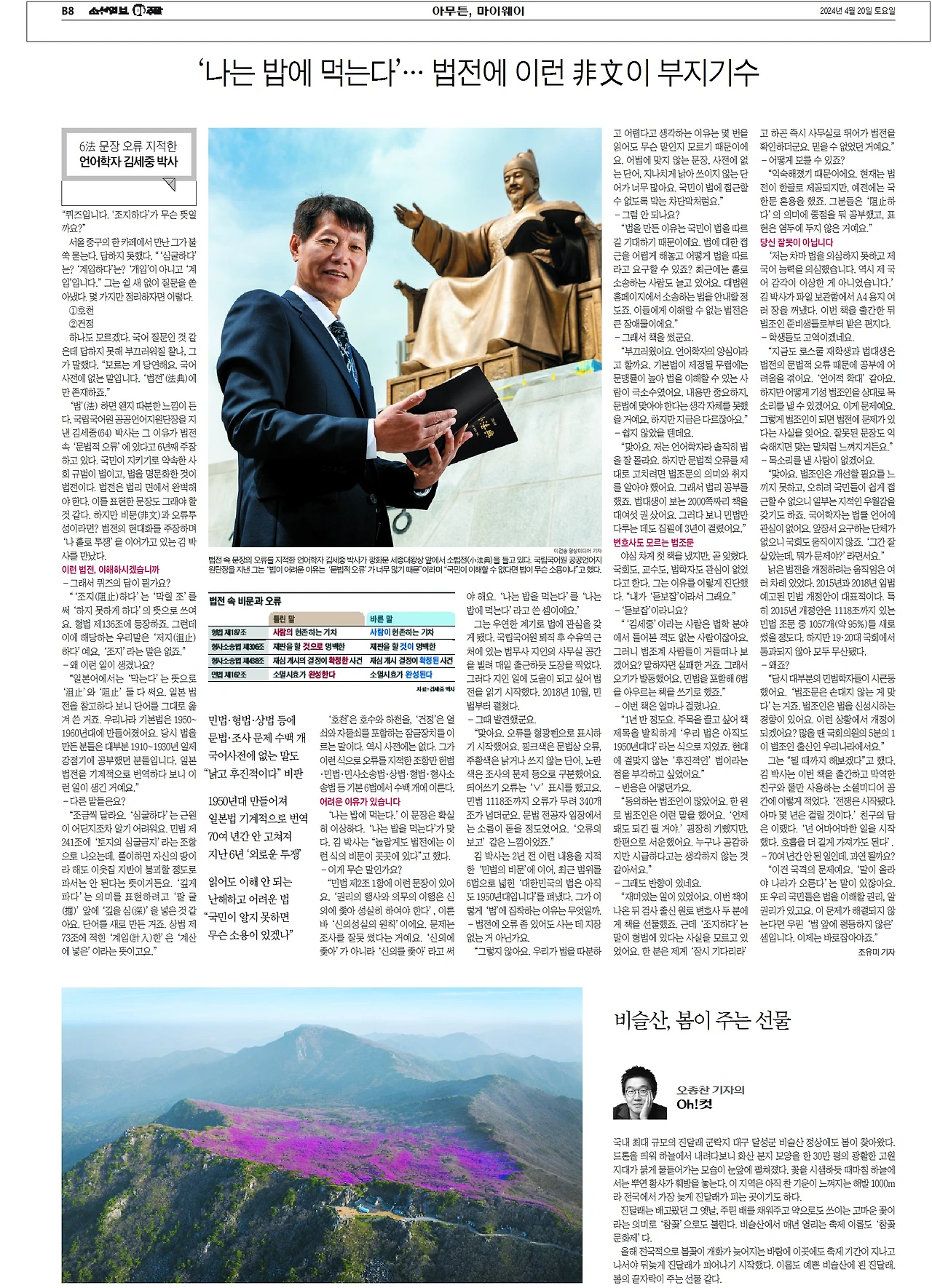 이름 있는 신문이라 역시 제목을 잘 뽑는다. 한눈에 시선을 사로잡는다. 유력지가 큼직하게 다루었으니 반향이 있을 것이다. 물론 이 기사만으로 당장 큰 변화가 있지는 않겠지만 차츰 우리나라 기본 6법 조문의 실상이 널리 알려지면 개선의 움직임이 생겨날 거라 본다. 이 나라가 후진국에서 탈피하기 위해 지난 60여 년 부단히 노력해 지금은 어느덧 선진국이란 말까지 듣게 됐지만 대한민국 기본법의 조문은 1950년대에 머물러 있다. 후진적이기가 이루 말할 수 없다.