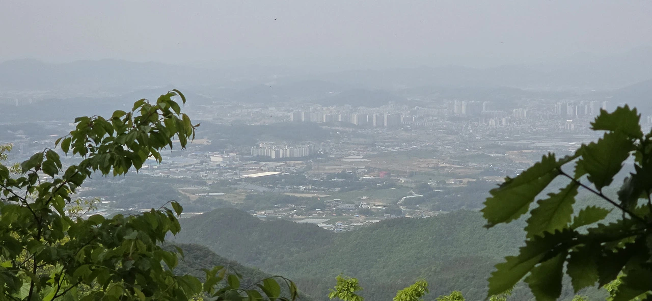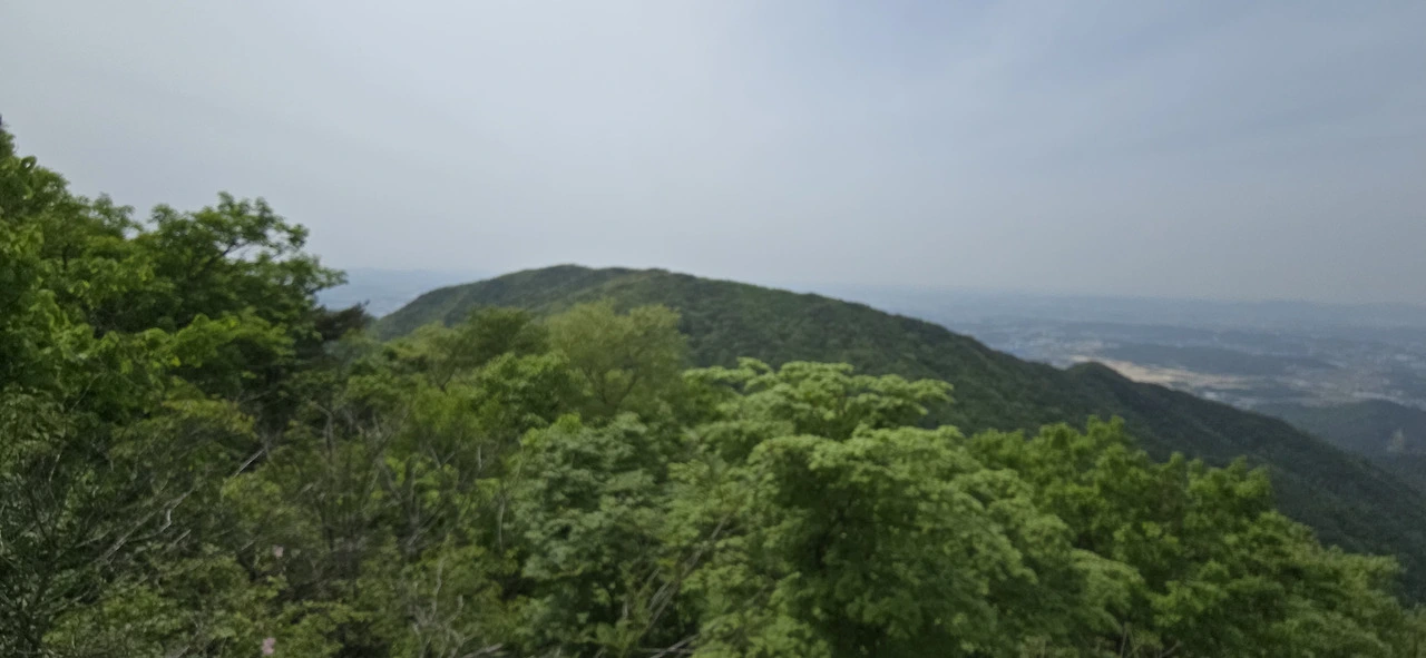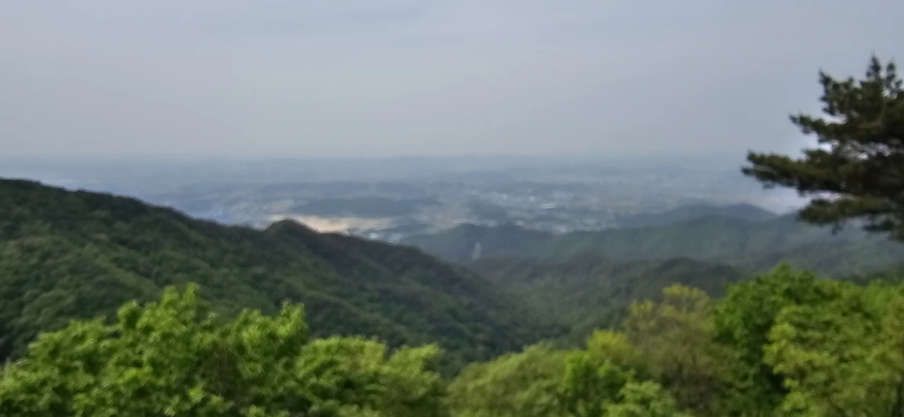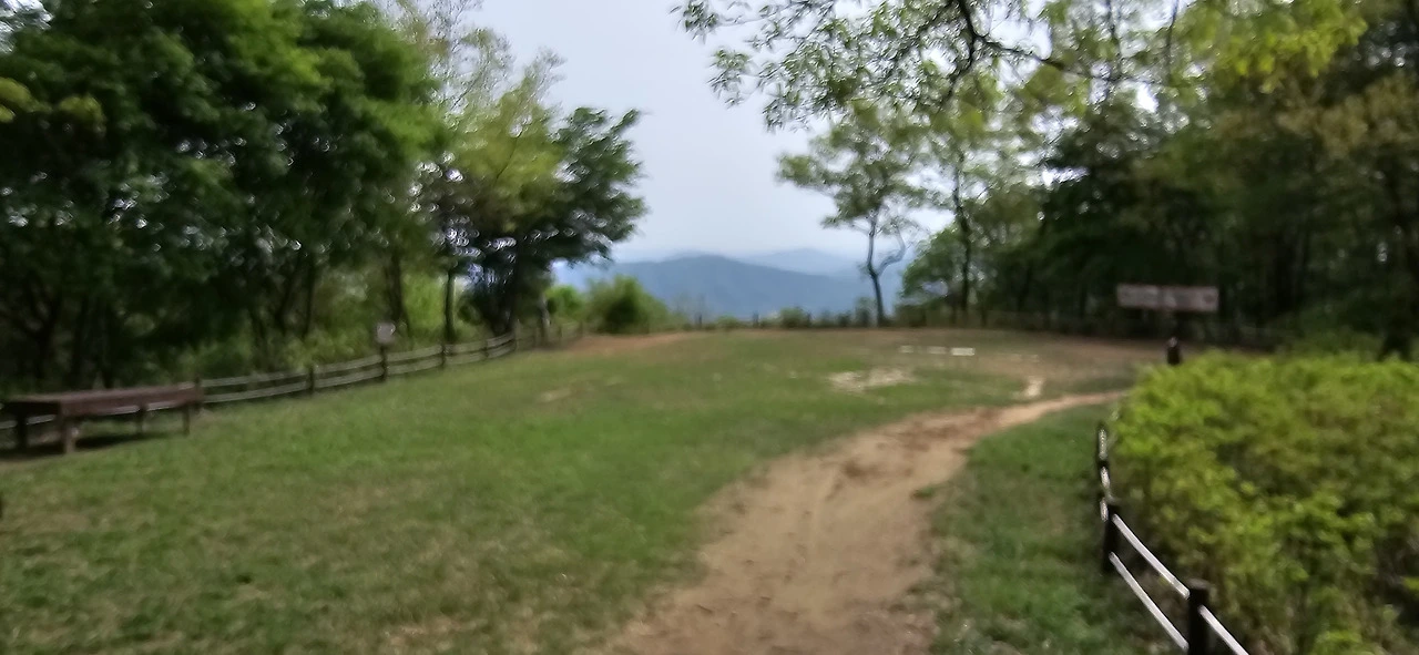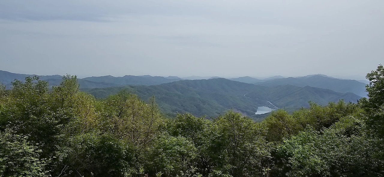 헬기장에서 남쪽을 향해 보노라니 도회지는 전혀 보이지 않고 마치 아마존에라도 온 듯한 착각에 빠질 정도로 펼쳐진 광경은 온통 연이은 산들과 빼곡한 숲이었다. 그 속에 청룡저수지가 눈에 확 띄었고. 정상에서는 좀 달랐다. 안성 시내 방향이 내려다보이는데 안성 시내, 공도쪽이 훤히 펼쳐져 있었다.