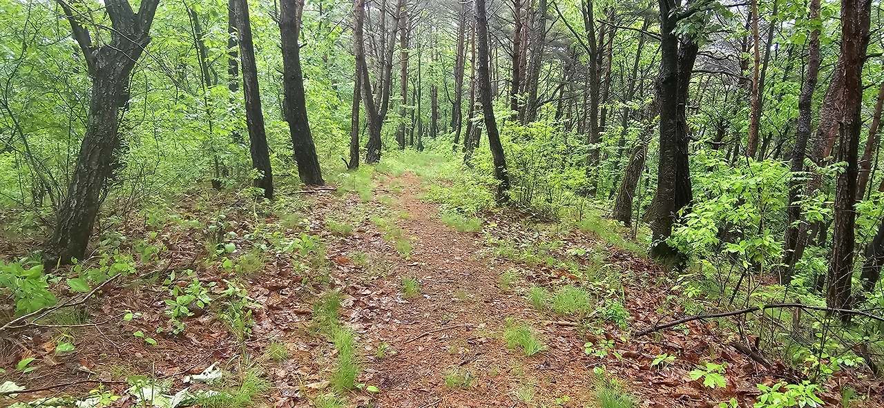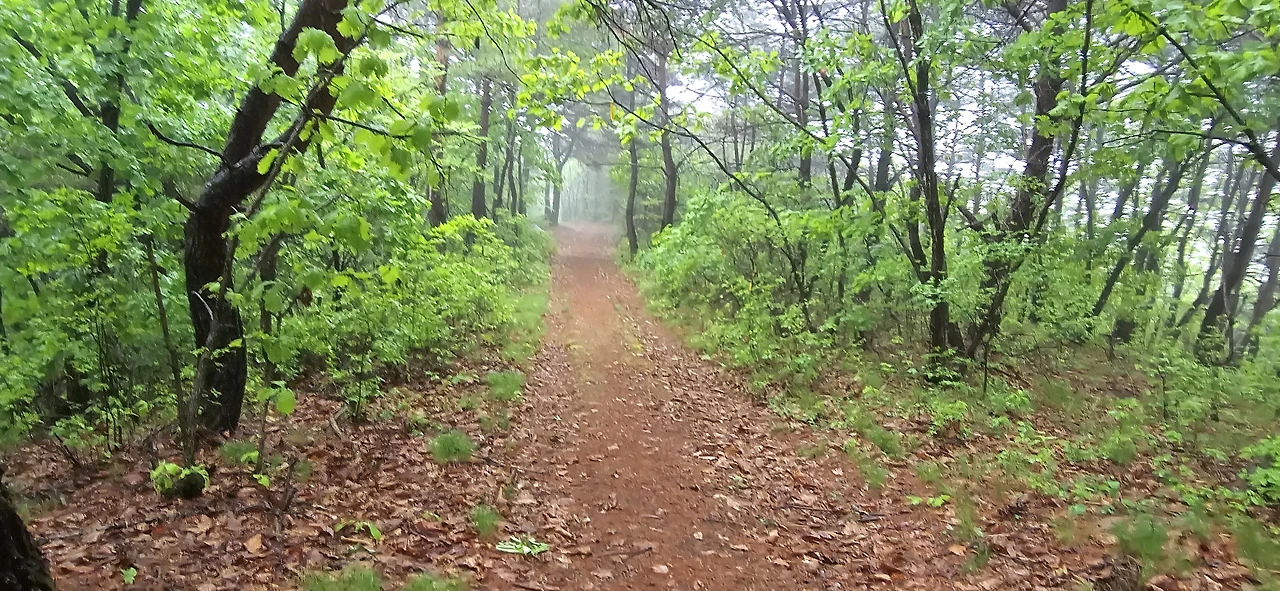 산속으로 깊이 들어가면 갈수록 길은 좁아졌다. 인공은 전혀 느낄 수 없었다. 아마 수백, 수천 년 전에도 이런 모습이었으리라. 온통 주위 숲은 참나무류로 우거져 있었다. 가도 가도 사람을 만날 수 없었다. 비가 오니 누가 이 길을 걷겠는가. 비록 도산서원은 그렇게 북적대도 말이다. 도중에 놀라운 광경도 맞이했다. 노루인지 사슴인지 산양인지 잘 구별 안 되는 동물이 길에 나타났다. 날 잠시 노려보더니 부리나케 숲으로 사라져 버렸다. 카메라를 켤 틈도 없었다. 혹시 뱀을 만나면 어쩌나 하는 겁도 살짝 났지만 뱀을 만나진 않았다. 다행이었다.