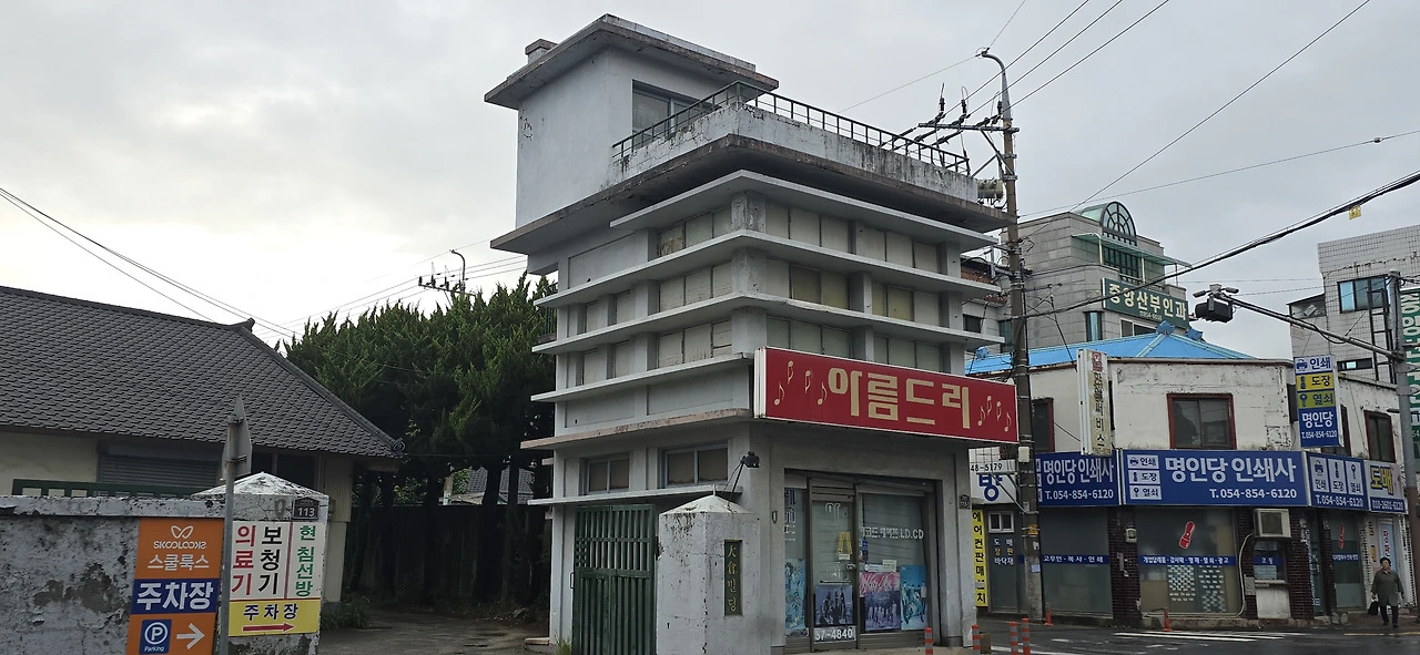 학교 앞 당북동네거리에서 남쪽으로 향했다. 길 왼편 한 건물 앞에 멈춰 섰다. '남실네'라는 상호가 정겹다. 주인이 남실이라는 뜻이겠다. 남씨 집안에 시집 간 여성인 모양이다. 그 옆 아리엔미용실은 친구의 부인이 하는 집이다. 그 옆집이 기름 파는 집이고... 대안로로 접어들었다. 신시장 입구가 보이는 곳에서 왼쪽으로 꼬부라졌다. 대안극장 간판이 아직도 남아 있었다! 과연 영화를 상영하고 있을까. 성소병원 앞에 곧 이르렀는데 규모가 우람했다. 서동문로로 들어섰다. 5학년 때 안동교대부국으로 전학 갔는데 한동안 평화동 철도관사에서 이 길을 따라 명륜동의 교대부국으로 다녔고 그러다 집이 명륜동으로 이사갔다. 얼마 걷지 않아 대창빌딩이 나타났다. 빌딩이라 하기에는 너무나 작은 2층 건물인데 어쩌면 60년 전 모습 그대로인가! 참 견고하게도 지었다. 그렇지 않고서야 어찌 이리도 오랜 세월 그대로란 말인가. 그리고 좀 더 가니 낯익은 건물들이 모습을 보였다. 안동교회다. 역사가 100년을 넘은 지 오래다. 그 옆에 현대식 건물로 안동교회100주년기념관이 우뚝 솟아 있다. 다시 그 옆은 경상북도유교문화회관이고 조금 더 가니 역시 고색창연한 건물이 그대로 서 있다. 목성동성당이다. 지도에는 천주교안동교구가톨릭센터라 돼 있다. 그리고 이 일대가 안동종교타운이다. 기독교, 천주교, 불교 기타 신흥 종교의 시설이 이곳에 모여 있다.