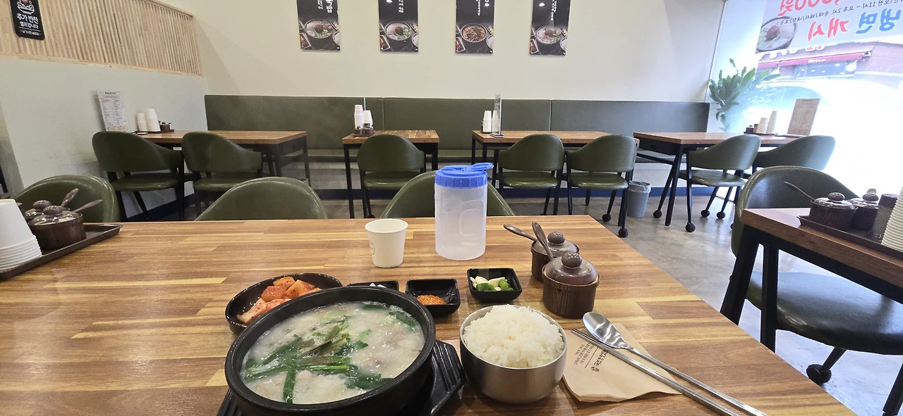 목성교 사거리를 지나 서동문로를 계속 걸었다. 왼쪽으로 보건소 건물이 우람했고 북문동으로 갈라지는 삼거리에 이르렀다. 참 낯익은 거리다. 골목으로 꼬부라지니 문화광장이었다. '왔니껴?'라는 큰 간판이 가운데 자리잡고 있었다. 경북 북부지방에서만 쓰는 '~껴'가 반갑게 관광객을 맞이한다. 아침이라 사람이 없지만 저녁에는 꽤나 흥청거릴 것이다. 안동도 많이 변했다. 베트남 사람들이 많이 진출했는지 베트남 노래방이 있질 않나 웬 자그만 호텔들이 꽤나 많다. 아침 먹을 식당을 찾아보았으나 문을 연 데는 한 군데도 없었다. 할 수 없이 신시장쪽으로 발걸음을 돌렸다. 시장인데 문 연 식당이 없을려구... 과연 신시장으로 넘어가니 어떤 식당에 문이 열려 있고 사람들이 분주히 일하고 있었다. 국밥참맛있는집이라는 데였는데 들어서려니까 "10~15분 기다려야 하는데요" 하길래 그 정도 기다리는 것쯤이야 하고 들어갔다. 식당 내부가 참 정갈했다. 얼마 후 보골보골 끓는 순대국을 내왔다.