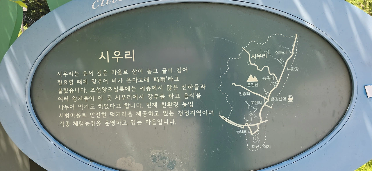 그 길은 매우 좁았다. 이정표도 없었다. 사람은 물론 없었다. 깊고 깊은 산림 속 오솔길을 홀로 걸어 내려갔다. 산이 여간 깊지 않다. 처음 들어보는 새소리가 어디선가 나고 있었다. 얼마나 걸어 내려왔는지 모른다. 드디어 내를 건너니 비로소 포장된 도로가 나타났다. 험지를 벗어난 것이다. 그 후로는 띄엄띄엄 민가가 있었다. 시우리 마을이었다. 시우리는 조선왕조실록에 따르면 세종대왕이 왕자, 신하들과 강무[무예를 강습함]를 하고 음식을 나누어 먹었다고 한다. 지금도 오지처럼 느껴지는데 600년 전에는 얼마나 깊고 깊은 산골이었을까. 그런데 임금이 이곳까지 왔다니!
