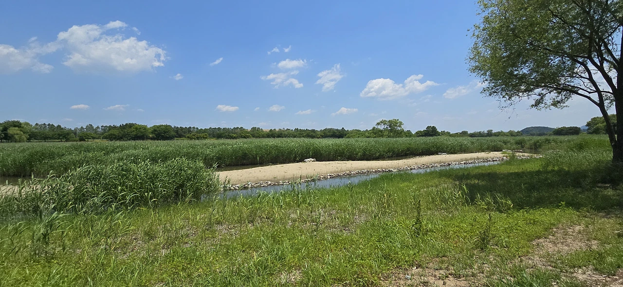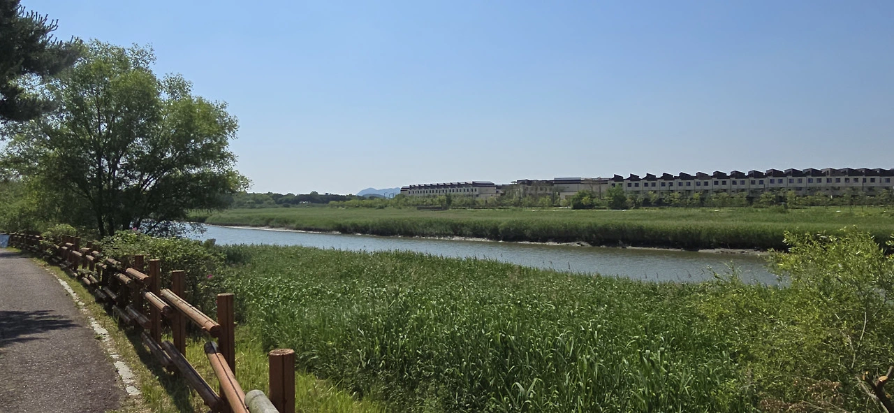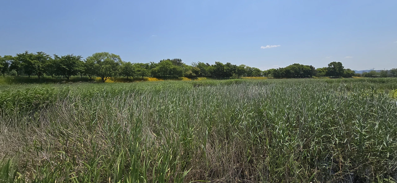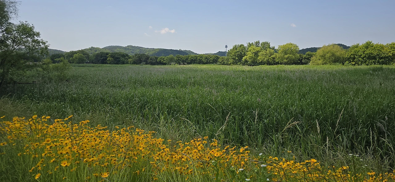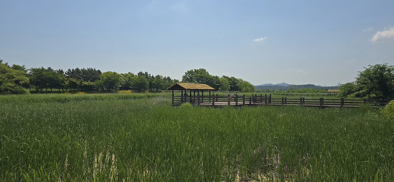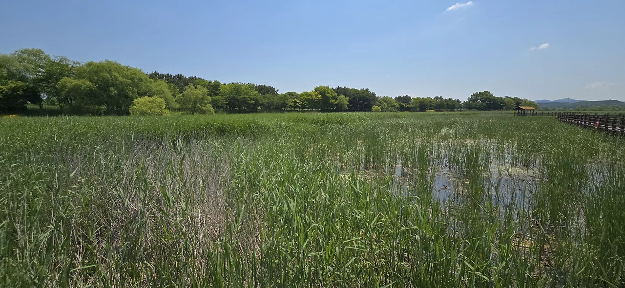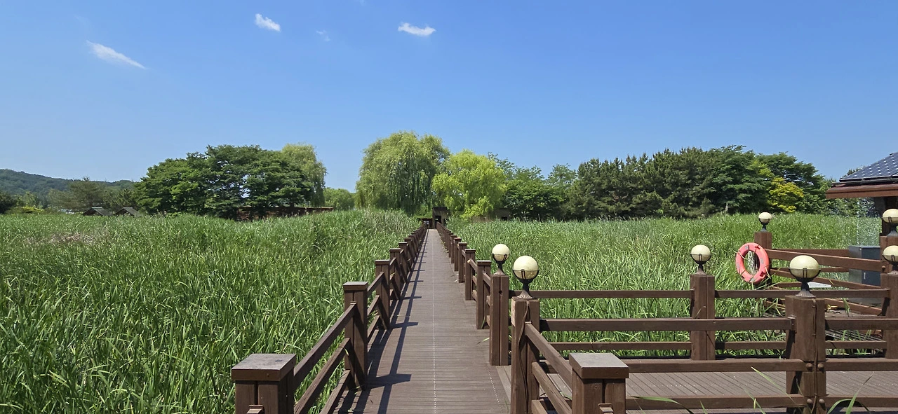 한 시간가량 버스를 타고 있으니 안산 시내를 통과해 갈대습지공원 입구에 닿았다. 자연을 온전히 보전하고 있는 습지공원 주위에 수십 층 현대식 아파트가 하늘을 찌르고 있었다. 극과 극이다. 천변을 따라 걷다 보니 공원 입구가 나타났고 직선 도로를 따라가다 보니 드디어 공원 초입이었다. 다리를 건너면서부터 습지공원 안이었다. 안내 지도를 둘러보고 대강의 방향을 잡았다. 지도에 1코스, 2코스, 3코스가 색깔로 구분돼 표시되어 있었지만 그거 무시하고 길이란 길은 최대한 다 다녀보기로 한다.
