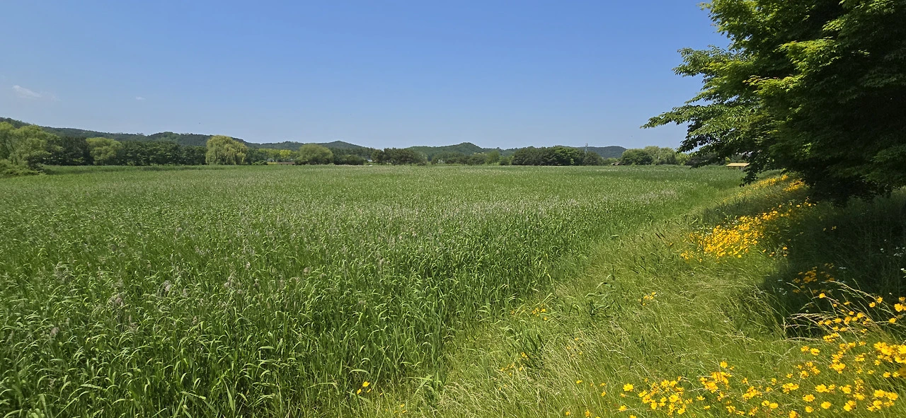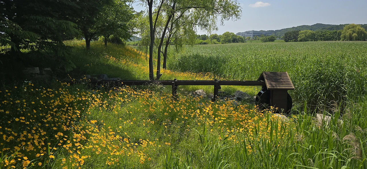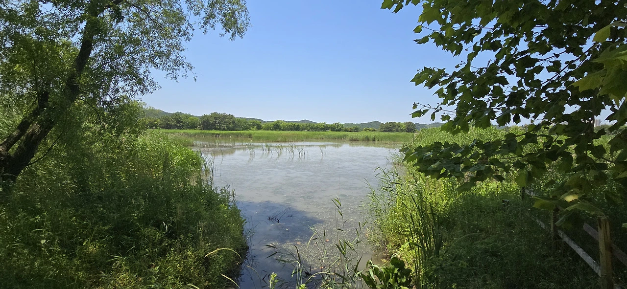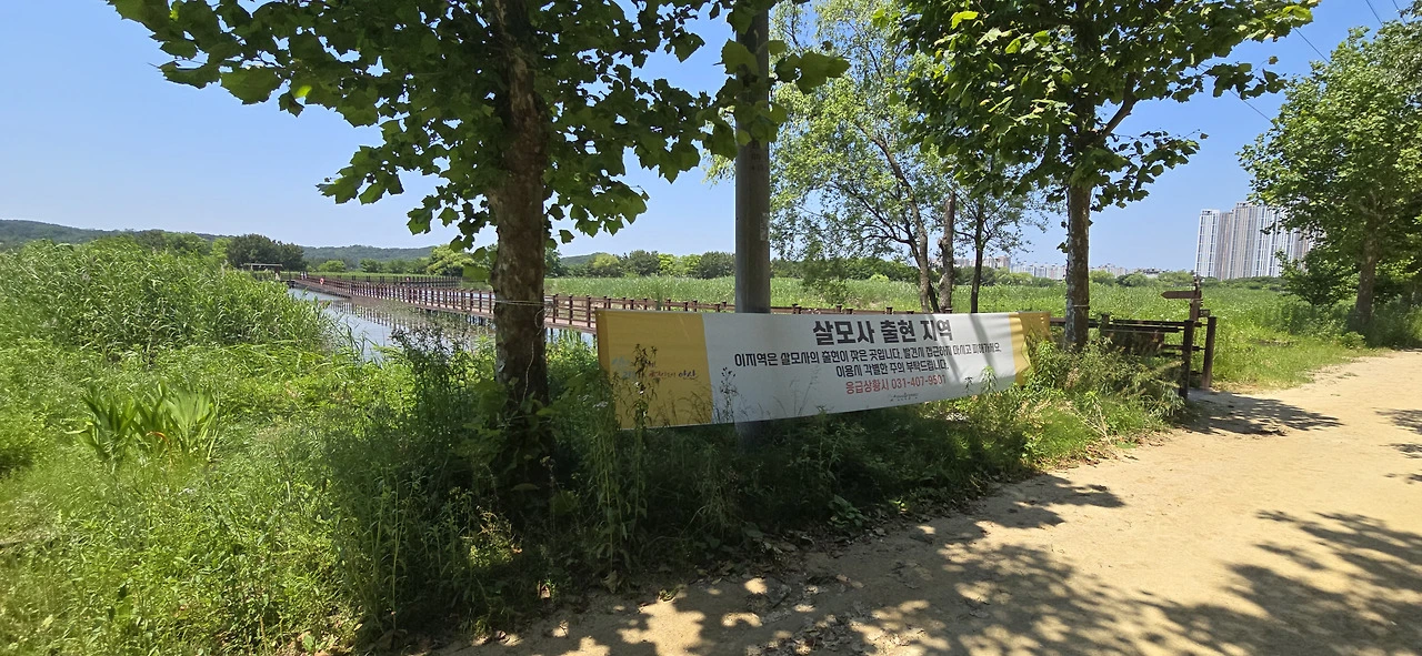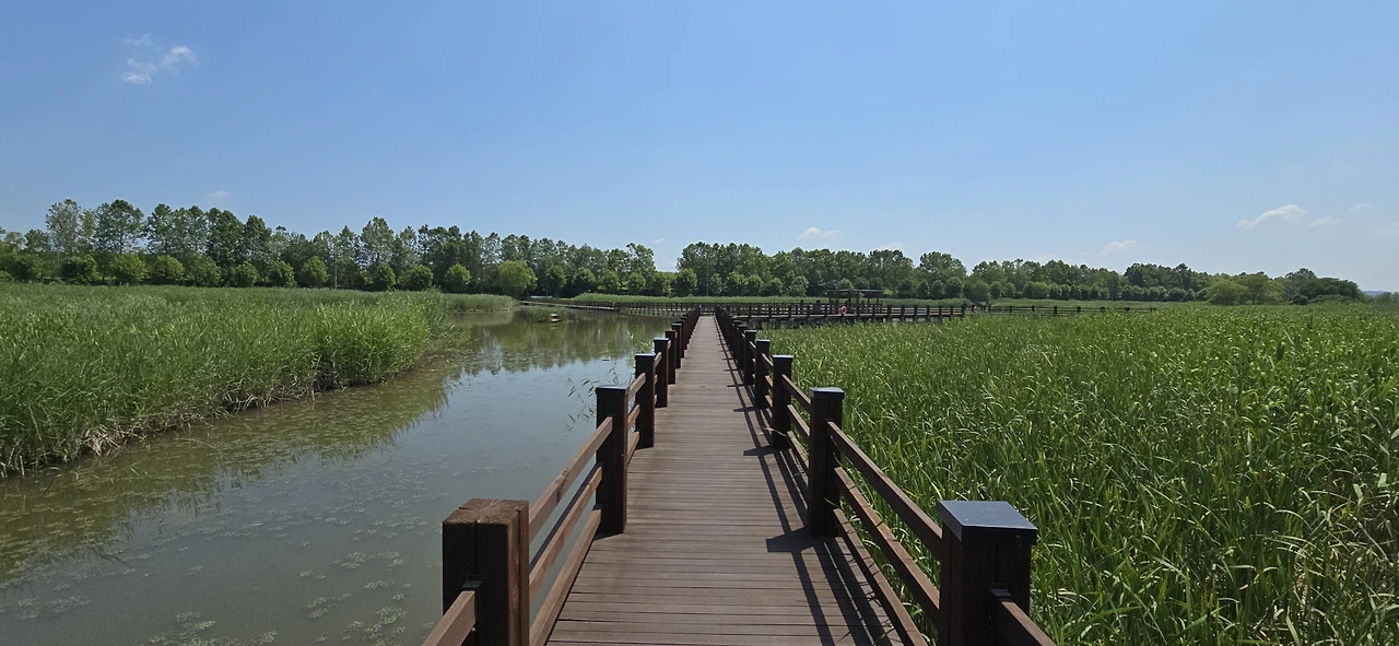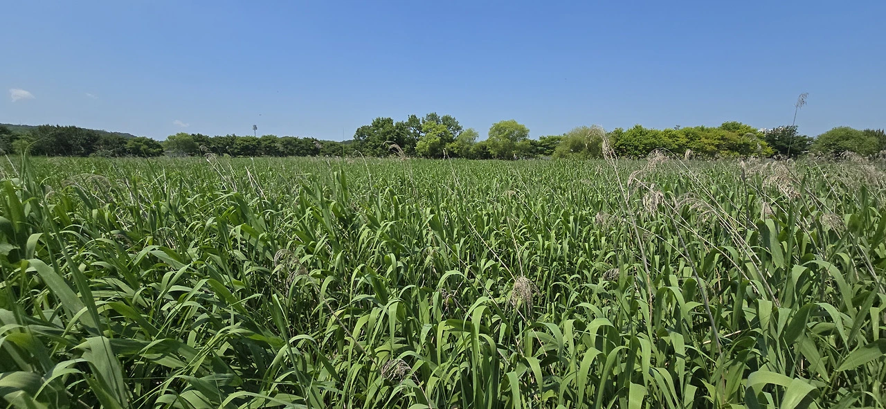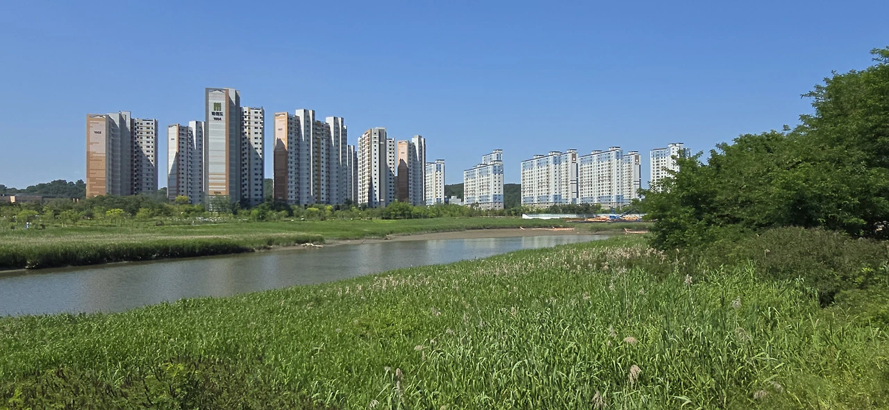 한 시간가량 버스를 타고 있으니 안산 시내를 통과해 갈대습지공원 입구에 닿았다. 자연을 온전히 보전하고 있는 습지공원 주위에 수십 층 현대식 아파트가 하늘을 찌르고 있었다. 극과 극이다. 천변을 따라 걷다 보니 공원 입구가 나타났고 직선 도로를 따라가다 보니 드디어 공원 초입이었다. 다리를 건너면서부터 습지공원 안이었다. 안내 지도를 둘러보고 대강의 방향을 잡았다. 지도에 1코스, 2코스, 3코스가 색깔로 구분돼 표시되어 있었지만 그거 무시하고 길이란 길은 최대한 다 다녀보기로 한다.