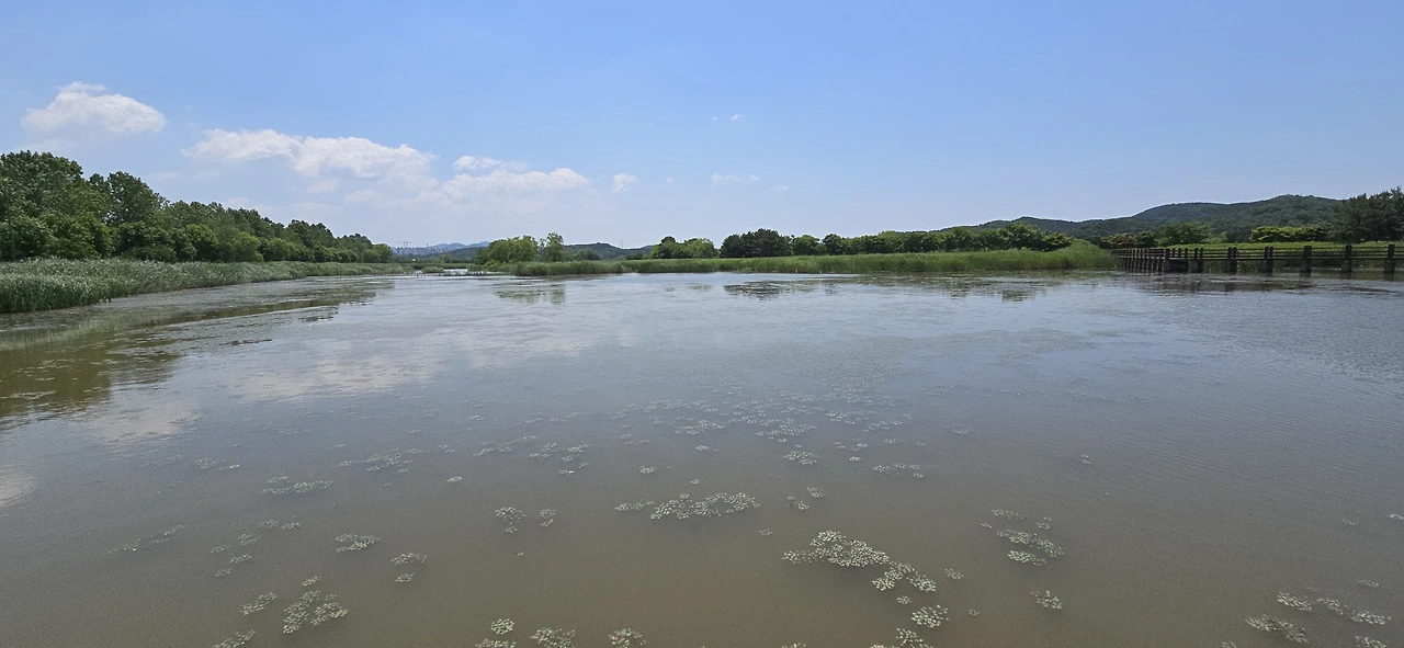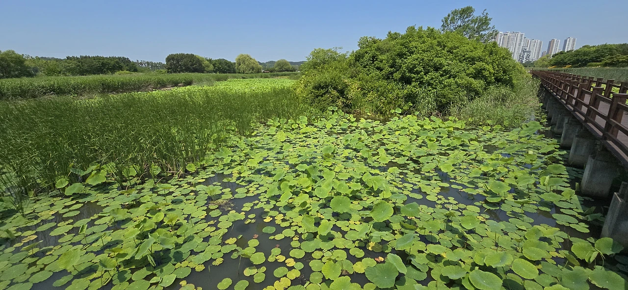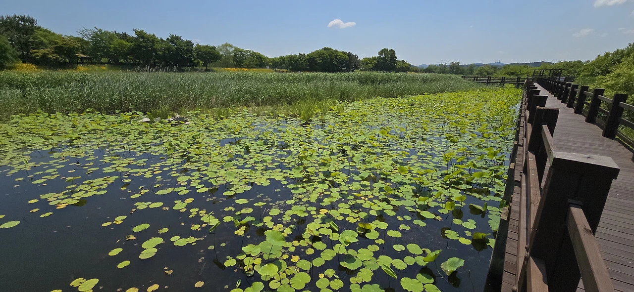 안산갈대습지공원은 입장료가 무료지만 3월부터 10월까지는 10시부터 6시까지만, 11월부터 2월까지는 10시부터 4시 반까지만 이용할 수 있다. 구역은 크게 직사각형 모양인데 양쪽으로 긴 일직선 길이 있고 가운데에 또 긴 길이 있다. 그러나 탐방하기 좋은 길은 그 세 직선 길이 아니다. 굽이 굽이 난 데크길을 걸으면서 비로소 갈대습지의 진수를 맛볼 수 있다. 습지가 무엇인지를 생생히 알게 해준다. 어쩌면 이리도 보전이 잘 되어 있는지 탄복했다. 갈대뿐인가. 연잎이 둥둥 떠 있고 연꽃이 곳곳에 피어 있다. 물속엔 또 얼마나 많은 동물이 서식하고 있을까! 물론 물새들도 이따금 허공으로 차고 올랐다.