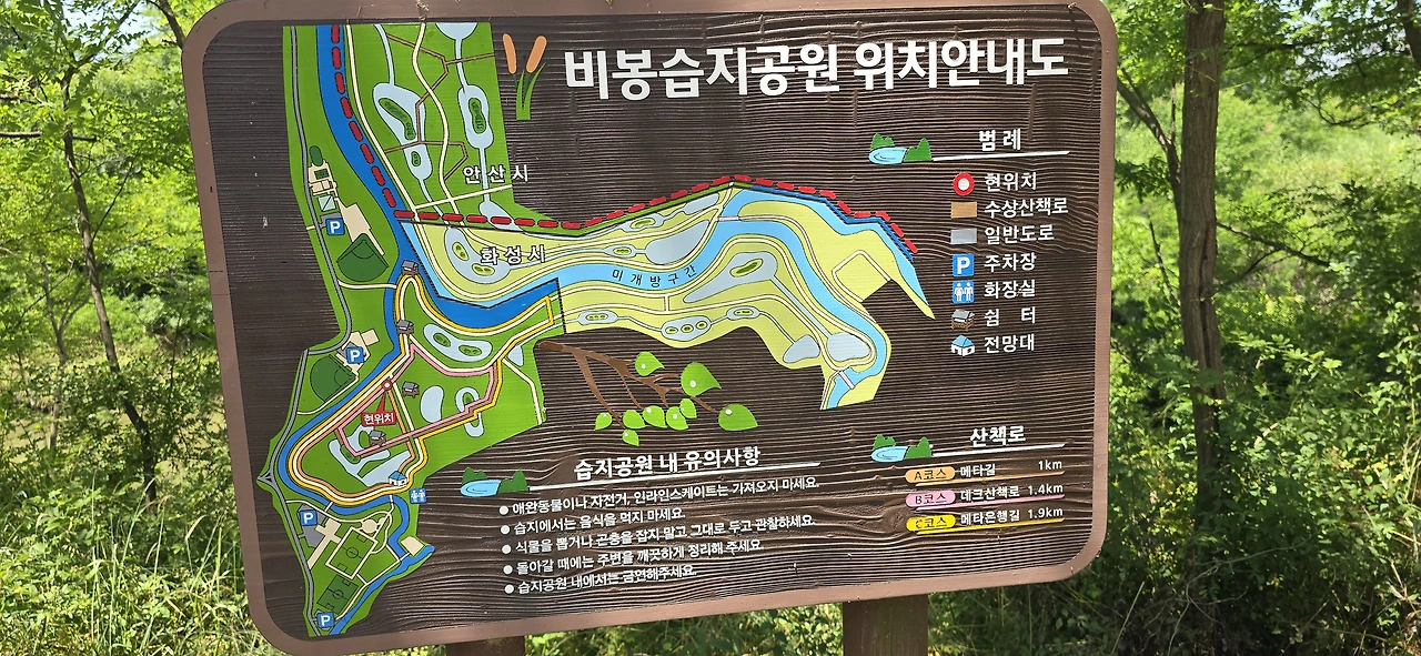 안산갈대습지공원과 비봉습지공원은 지도상으로는 붙어 있다. 그러나 안산갈대습지공원은 안산시에 속하고 비봉습지공원은 화성시에 속한다. 두 습지공원 사이로 흐르는 물이 행정구역을 갈라 놓았고 공원에 들어가는 입구도 아주 동떨어져 있다. 다행히 여의도에서 출발, 석수역을 거쳐 화성 새솔고까지 가는 5609번 광역버스는 신통하게도 안산갈대습지공원 입구를 거쳐서 비봉습지공원 부근까지 데려다 준다. 물론 종점에서 비봉습지공원까지 걸어가기엔 좀 멀지만 운동 삼아 간다면 갈만하다. 시내버스를 기다려서 타고 가도 되고.