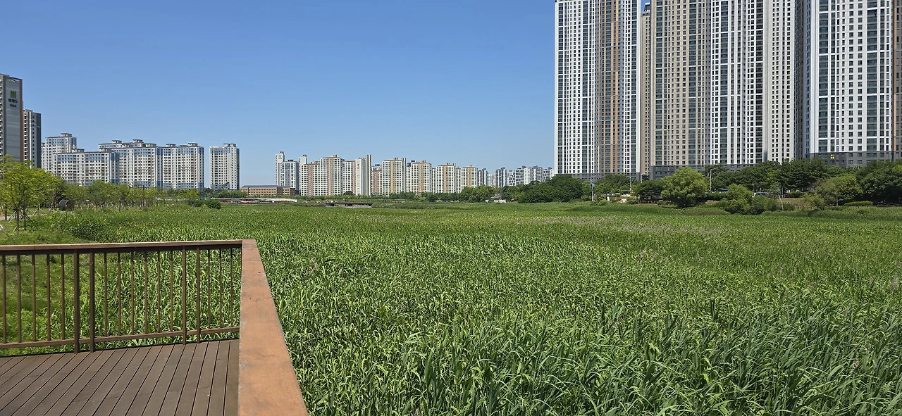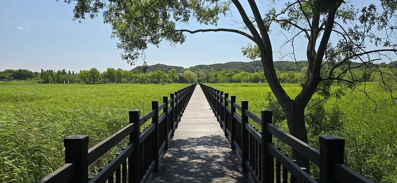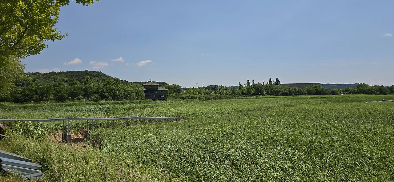 비봉습지공원은 화성시 비봉면에 있다고 해서 비봉습지공원일 것이다. 비봉면이 화성시의 북쪽 끝에 있고 다시 비봉습지공원도 비봉면의 북쪽 끝에 있다. 근처에 야구장만 없다면 더 없이 적막할 텐데 야구장의 함성 소리가 이따금 들려왔다. 하지만 습지공원 안에 들어서니 일전에 가본 안산갈대습지공원과는 비교도 안 될 정도로 관람객이 적다. 도무지 사람이 잘 안 보인다. 물론 공원의 면적은 안산갈대습지공원의 절반 정도나 될까 싶다. 곳곳에 쉼터가 있었다. 조류를 관찰할 수 있는 조망대도 몇 군데 있었다. 입구 부근에 있는 전망대는 비록 규모는 작아도 조그마한 전시실과 함께 탁 트인 근사한 조망 시설을 갖추고 있었다. 마치 전망 좋은 카페에 온 듯한 느낌이... 공원 밖에는 큼직한 실내체육관이 있어 사람들이 배드민턴을 즐기는 듯싶었다. 서울 교외에 이렇게 생태를 잘 보존한 한적한 곳이 있다니 새삼 감탄을 금치 못했다.