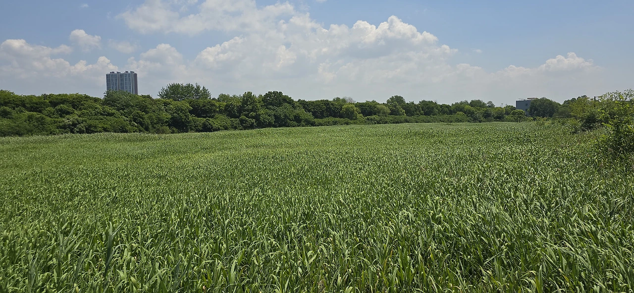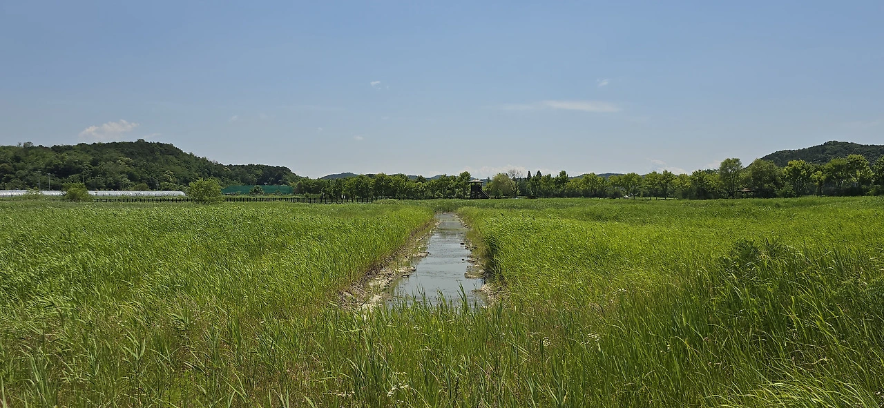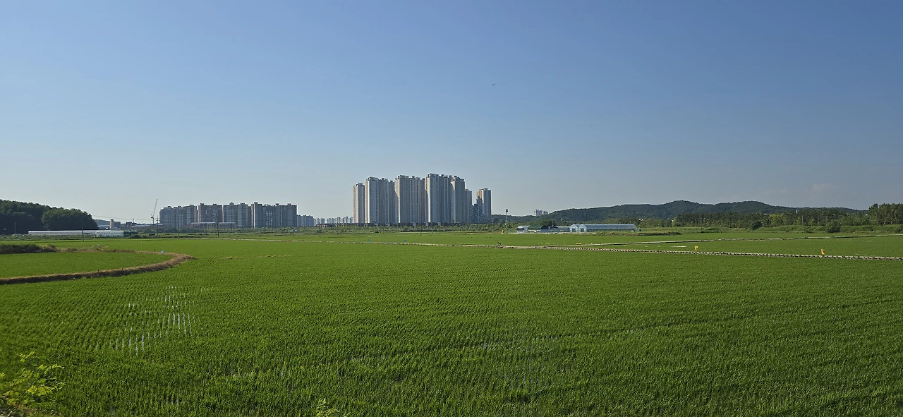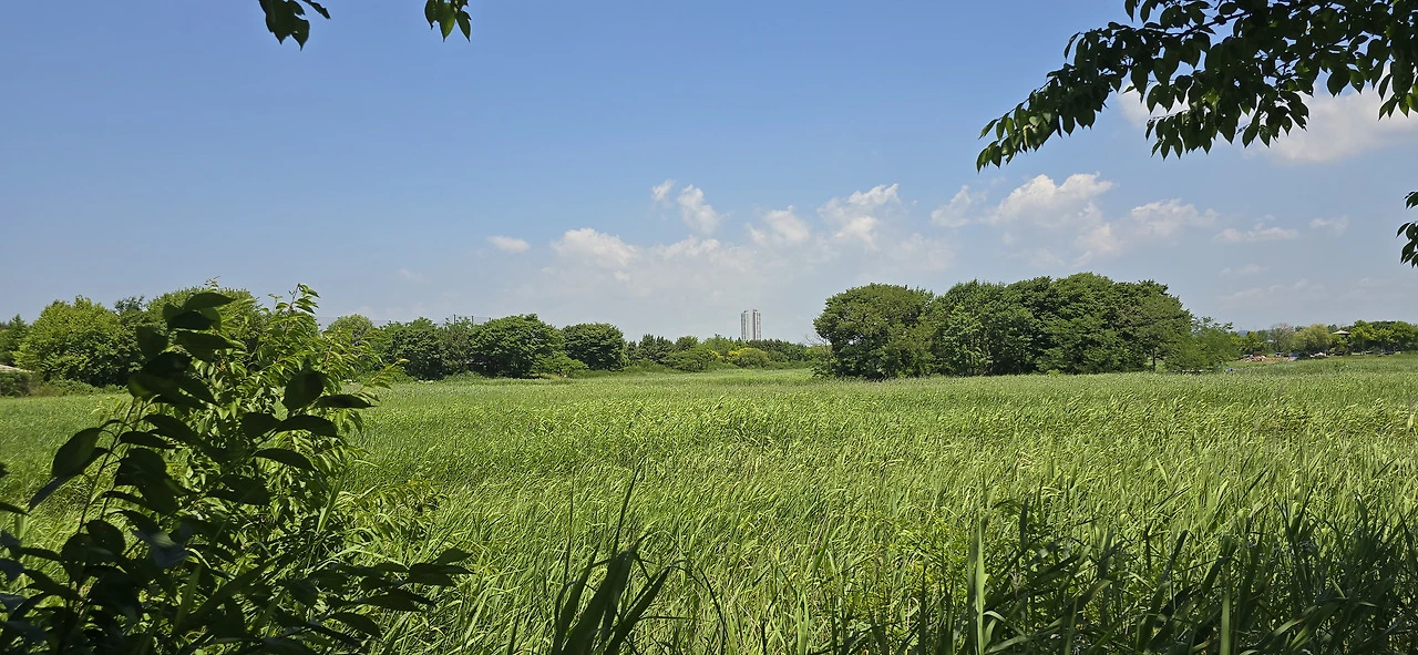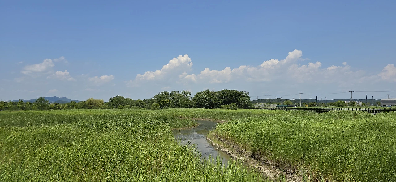 해망산을 내려오니 도로에 이르렀고 비봉면과 남양읍의 경계를 알려주는 표지판이 나타났다. 그리고 드넓은 벌판에 온통 모가 자라고 있었다. 이 여름이 지나면 가을엔 주렁주렁 곡식이 열리리라. 논 사이로 난 농로를 따라 걷다 보니 출발했던 곳인 새솔고 부근에 닿았다. 6시간 동안 17km를 걸었다. 안산시의 남쪽 끝에 안산갈대습지공원이 있고 화성시의 북쪽 끝에 비봉습지공원이 있다. 소중한 생태공원이다.