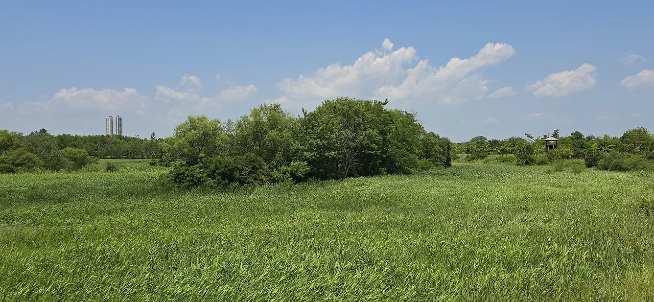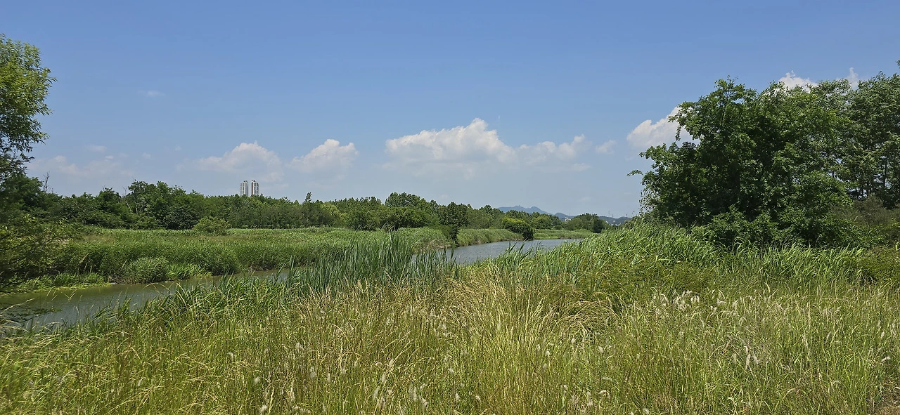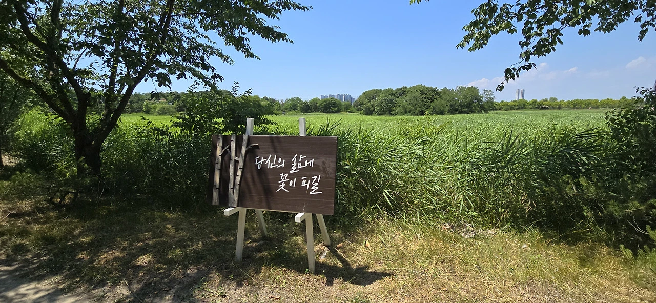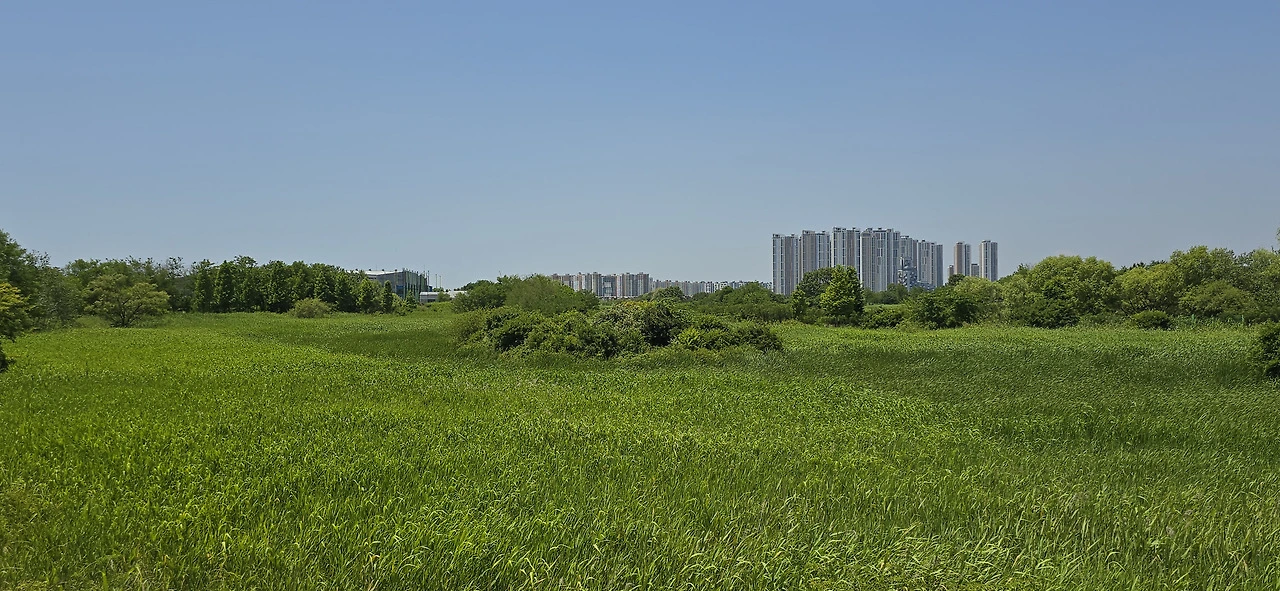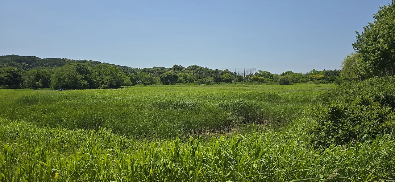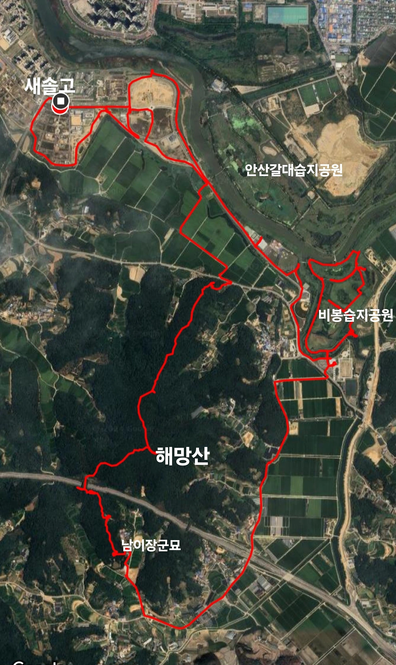 해망산을 내려오니 도로에 이르렀고 비봉면과 남양읍의 경계를 알려주는 표지판이 나타났다. 그리고 드넓은 벌판에 온통 모가 자라고 있었다. 이 여름이 지나면 가을엔 주렁주렁 곡식이 열리리라. 논 사이로 난 농로를 따라 걷다 보니 출발했던 곳인 새솔고 부근에 닿았다. 6시간 동안 17km를 걸었다. 안산시의 남쪽 끝에 안산갈대습지공원이 있고 화성시의 북쪽 끝에 비봉습지공원이 있다. 소중한 생태공원이다.
